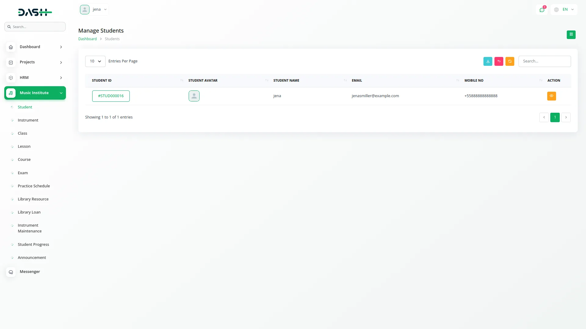 - If the admin assigns additional permissions, students can gain access to more sections within the music institute, such as managing specific class tasks or instrument records, enabling a more interactive and empowered learning experience. You can also export, reset, and reload the list whenever you want.