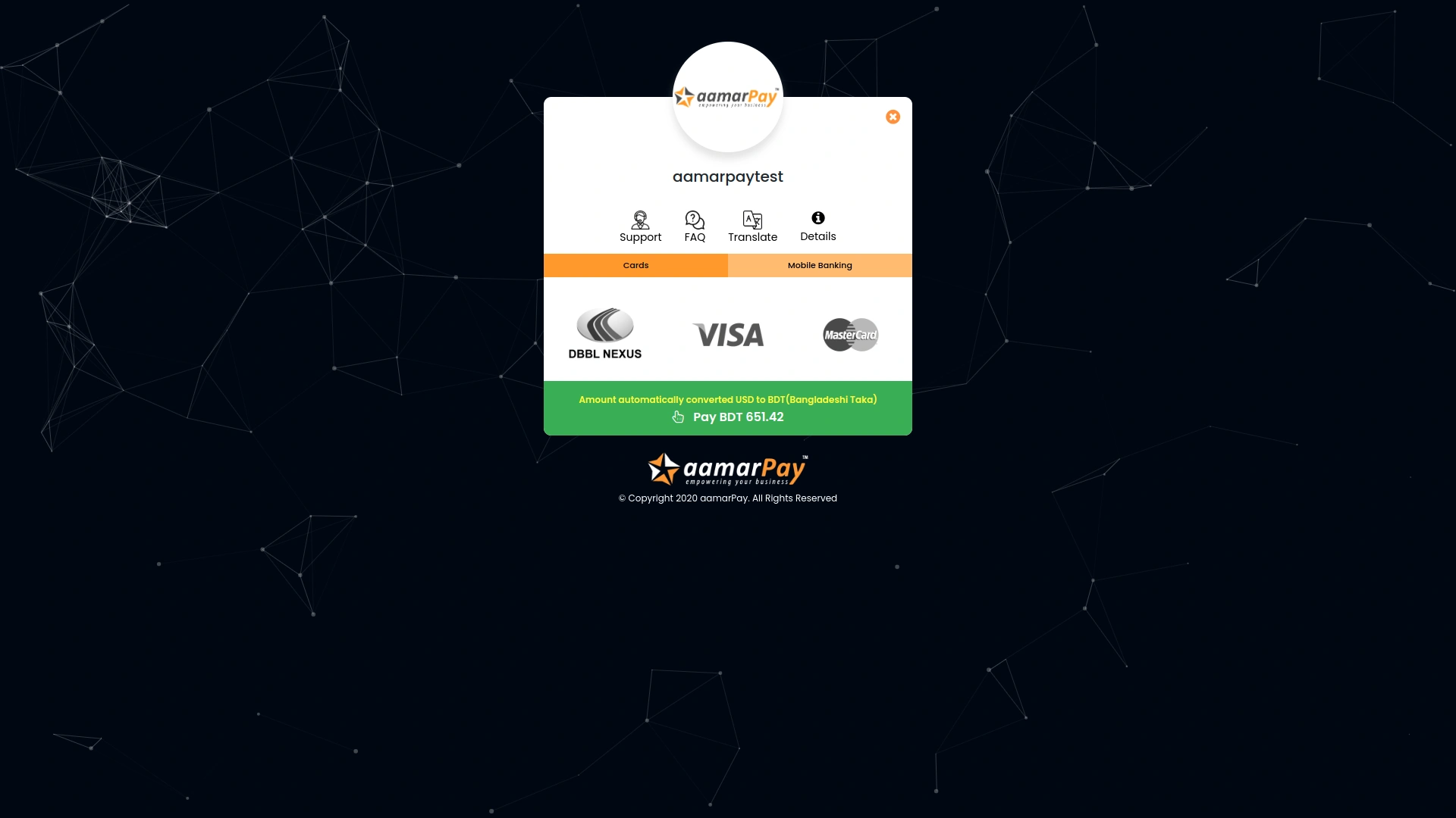 API Key Settings Page for AamarPay Integration