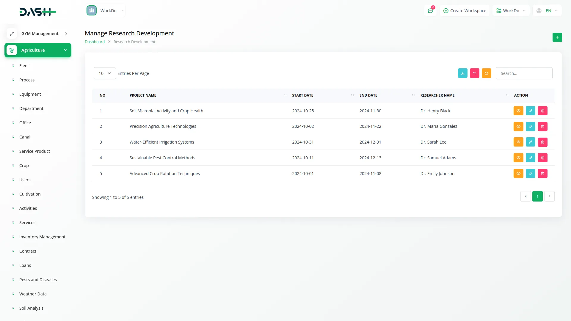 Manage research projects, track milestones, and record outcomes to support future agricultural innovations.
