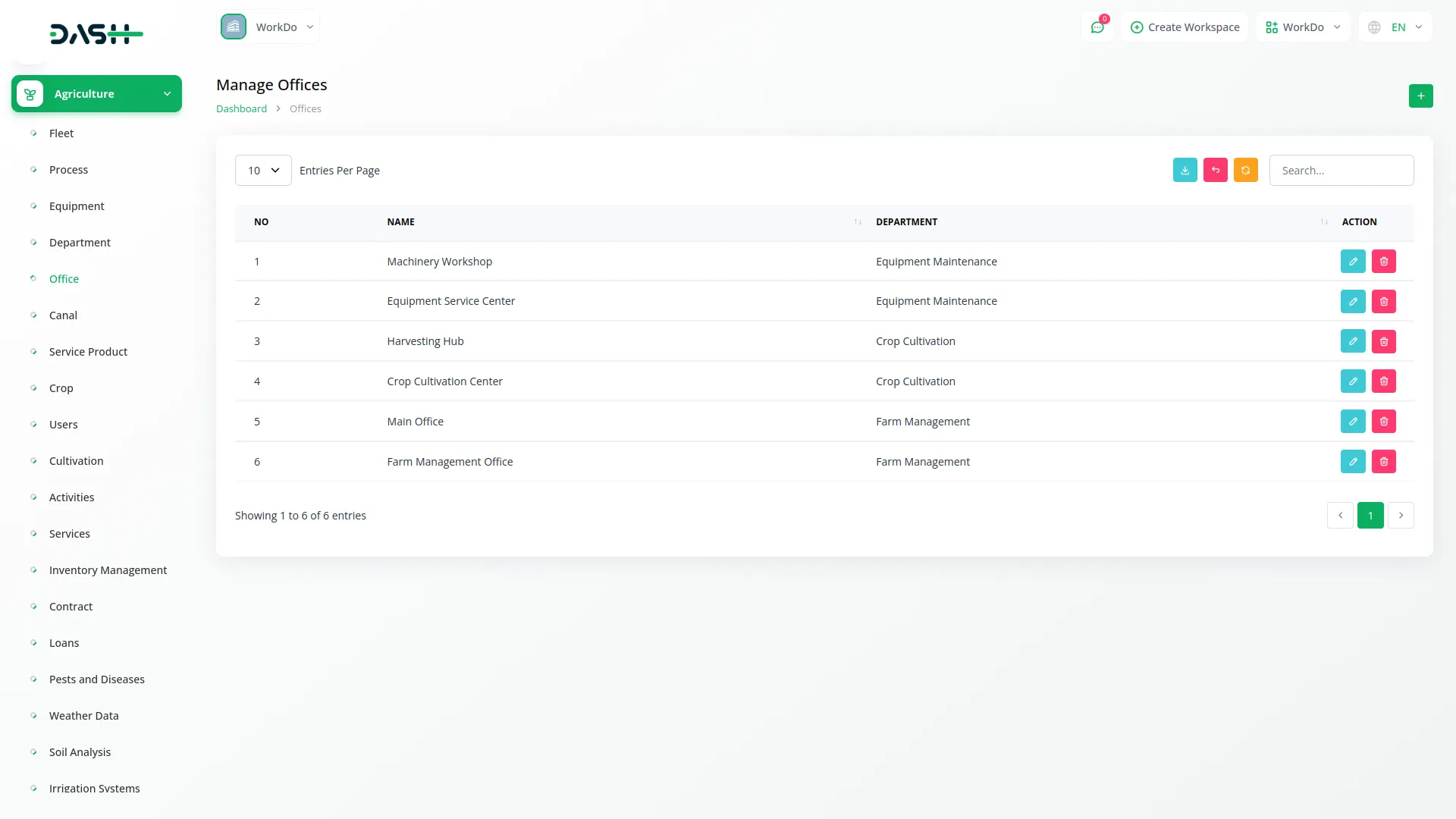 Streamline your internal hierarchy by managing departments, offices, and user roles such as farmers. Offices are linked to departments, allowing clear assignment of regions and responsibilities. Farmer profiles include personal details, land data, and office affiliations, making them integral to planning and reporting. This setup improves coordination, simplifies access control, and supports location-based operations.