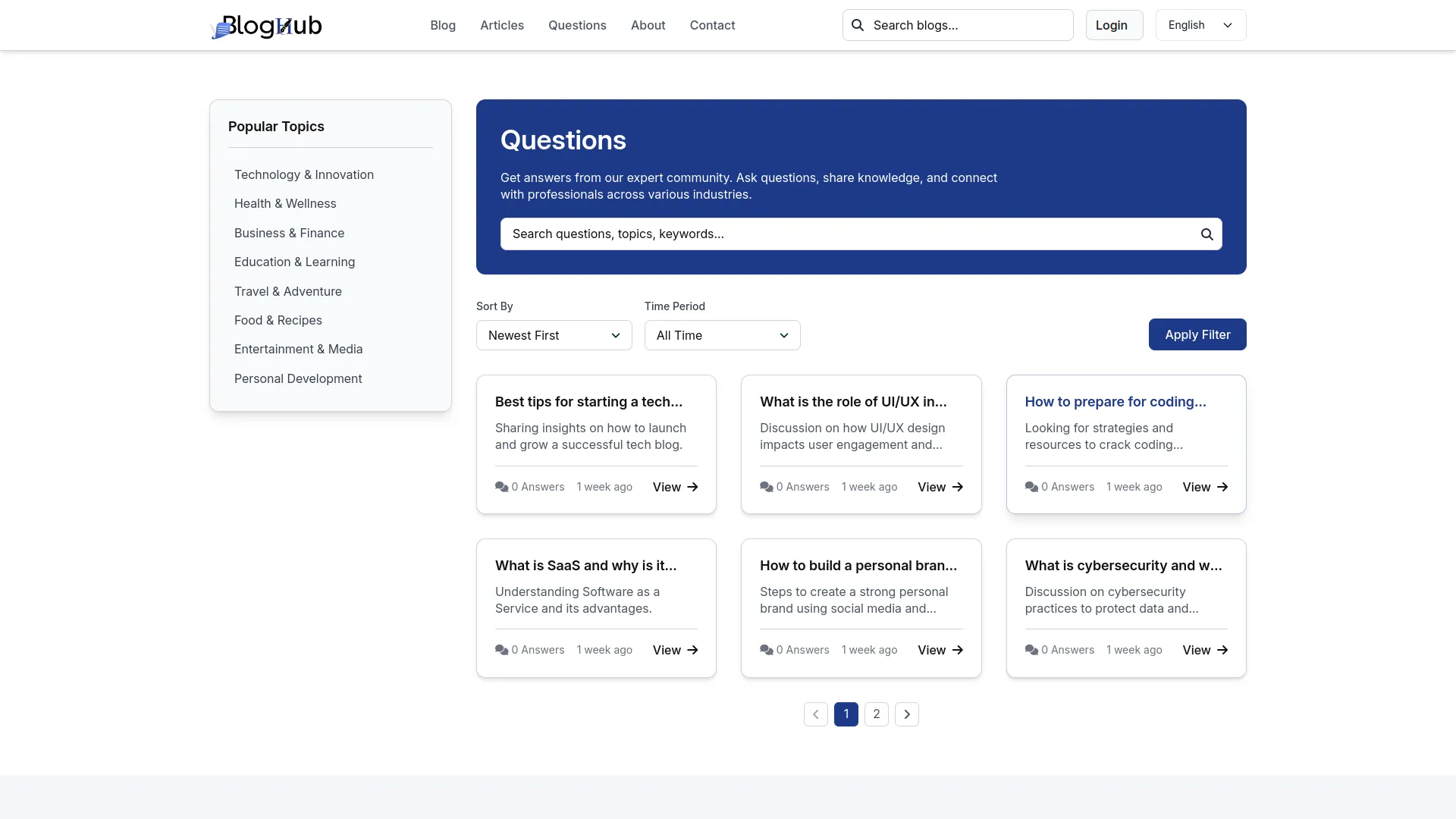 Users can ask questions and get answers from other community members. Organize questions by topics and show popular ones on the homepage when the admin enables display. Support reply threads where people can discuss answers. Questions appear with answer counts and time stamps. Users can like questions and answers they find helpful.