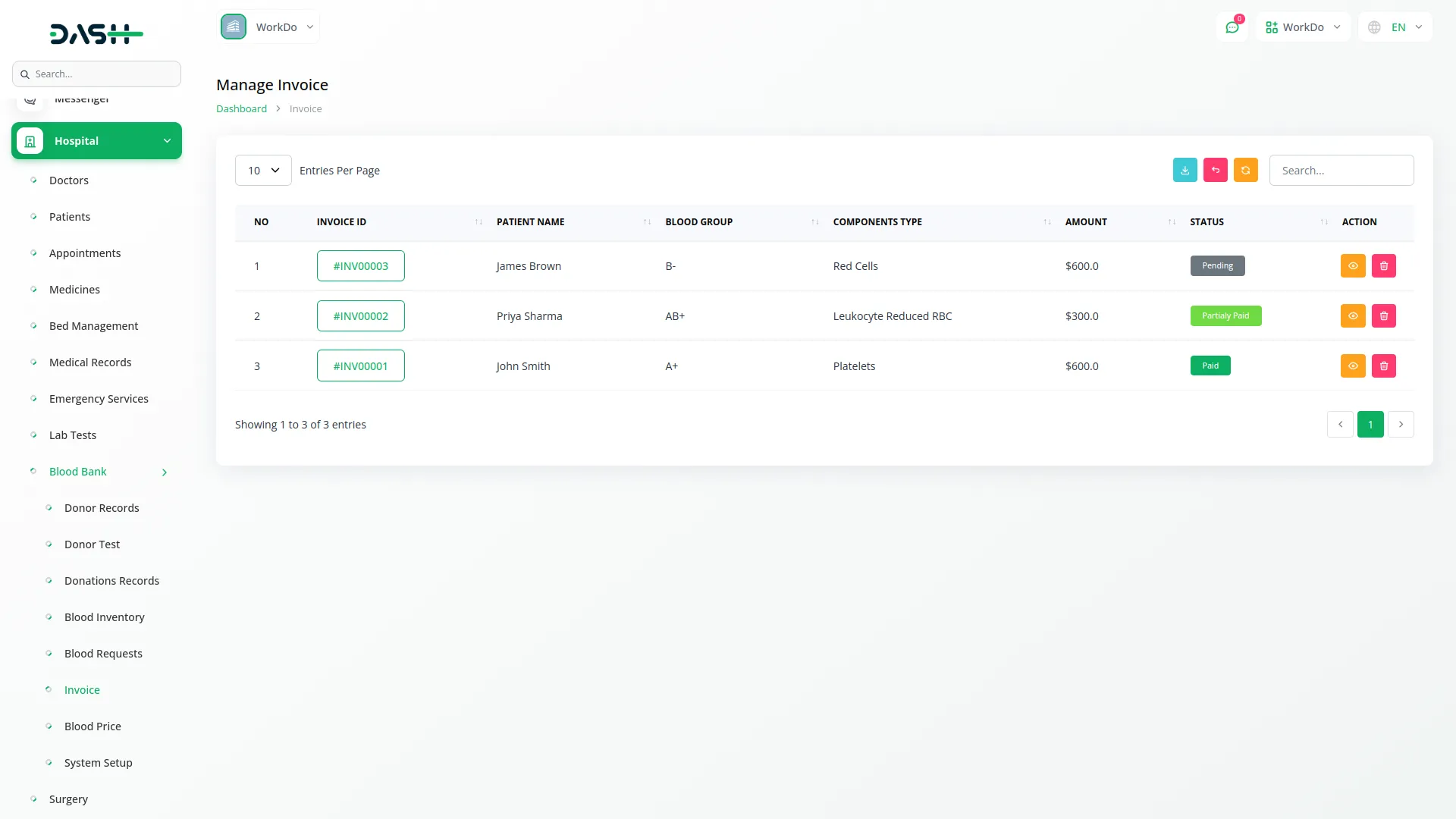 • Generate an invoice directly from approved blood requests