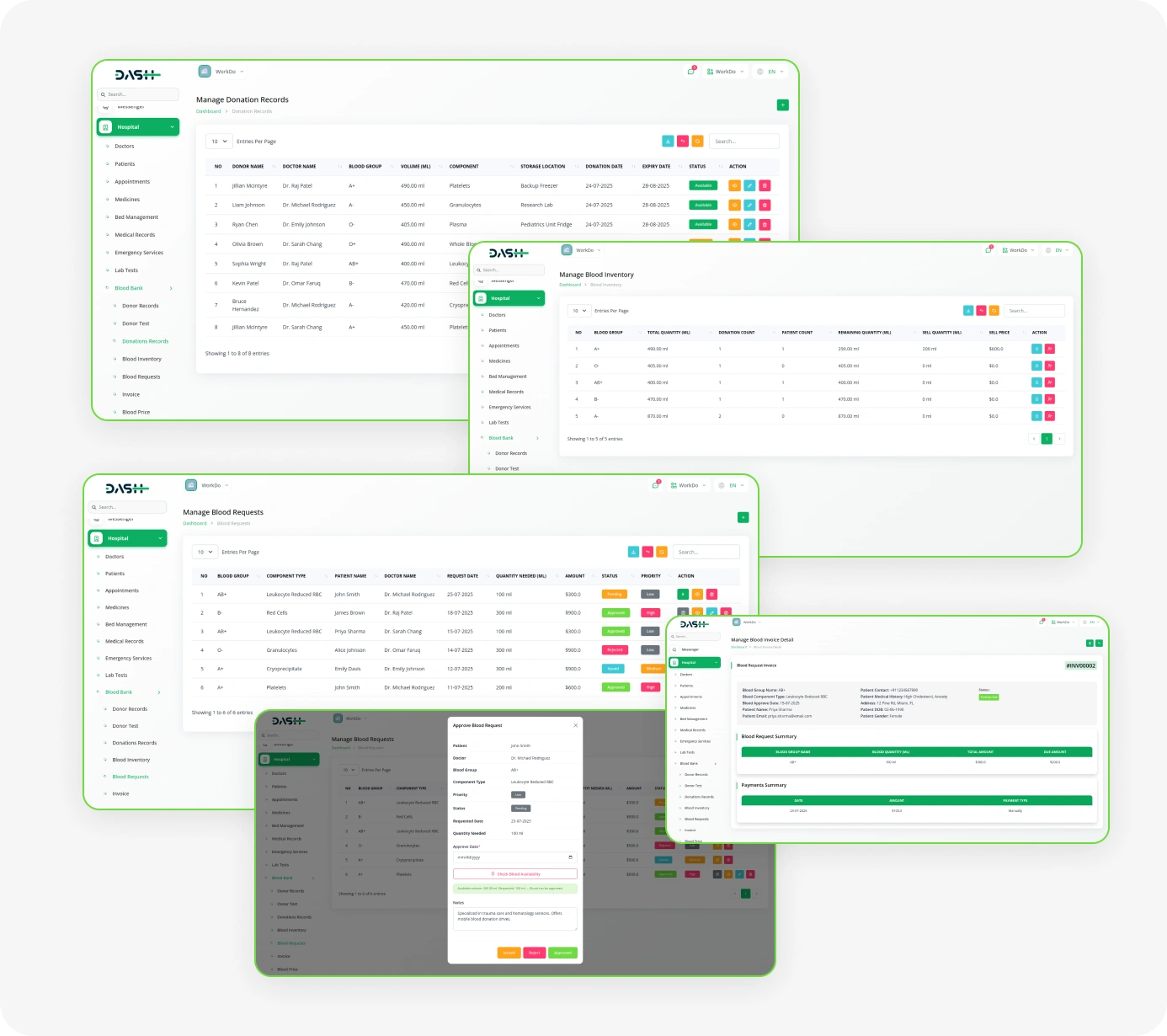 - Generate an invoice directly from approved blood requests