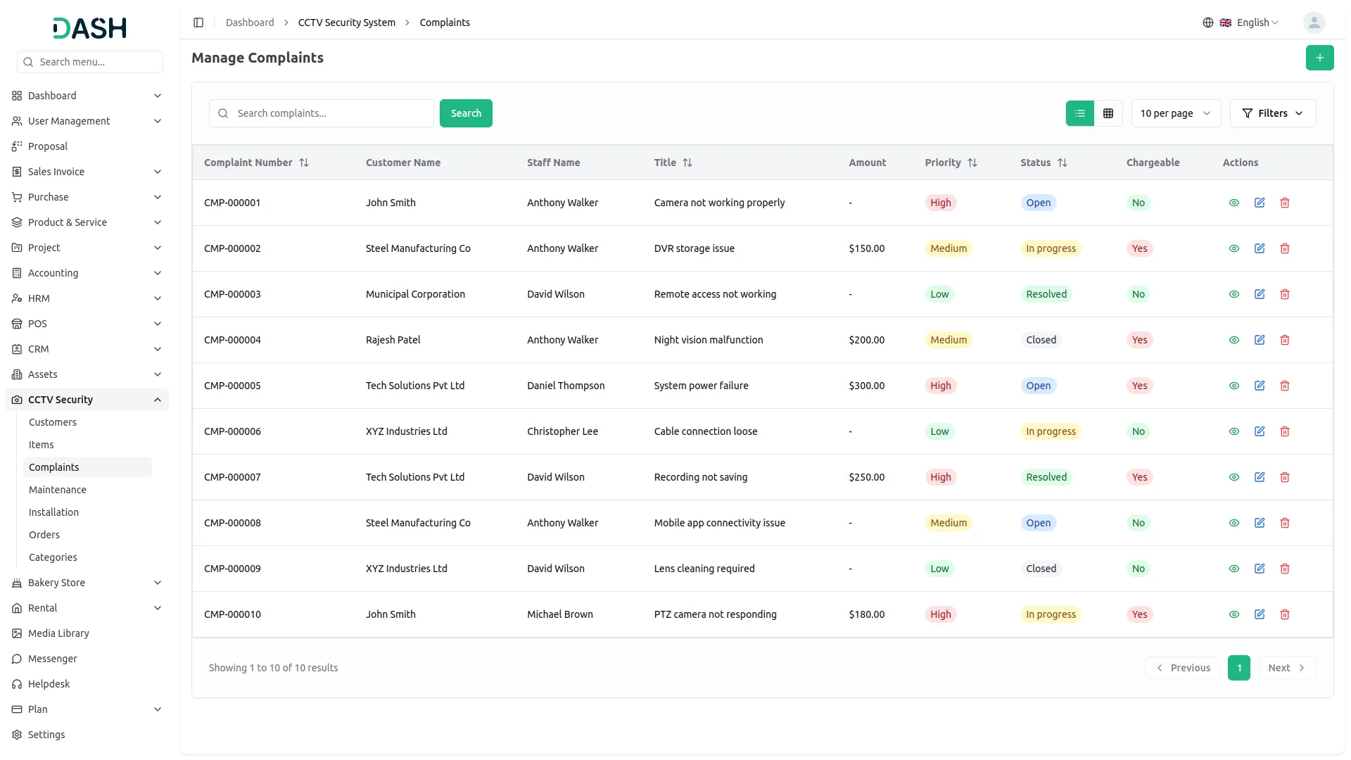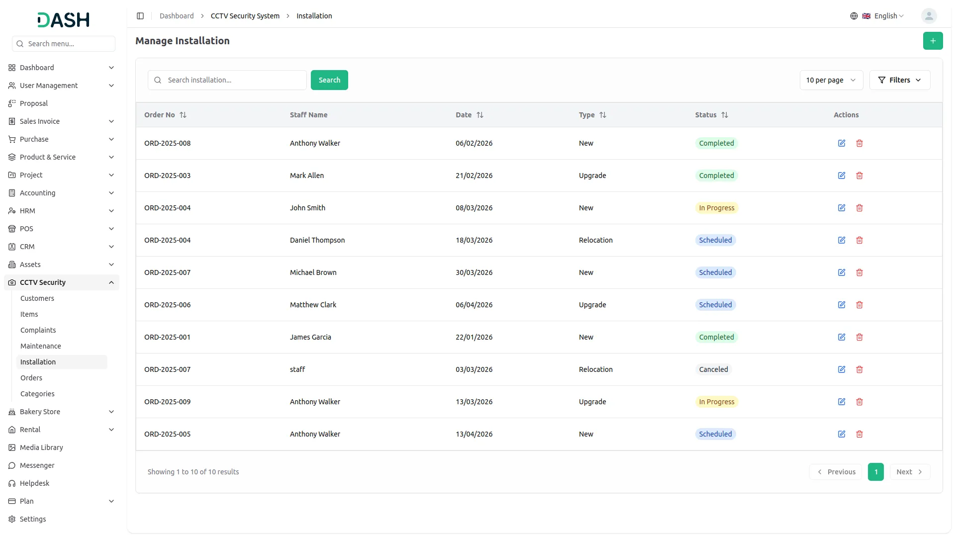 Every security business relies on equipment like cameras, recorders, and cables. The Items Management feature tracks each product’s brand, price, warranty, and quantity. This centralized catalog keeps information accurate and easy to reference. It simplifies inventory management and streamlines service and order processes.