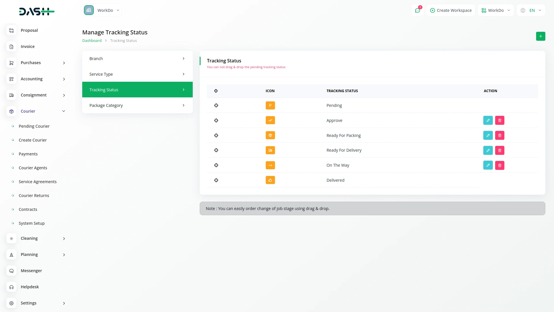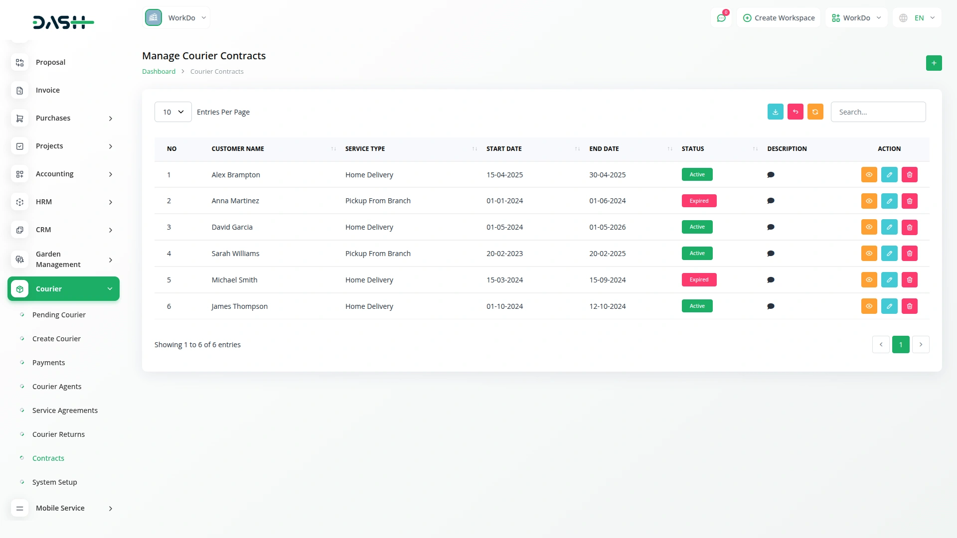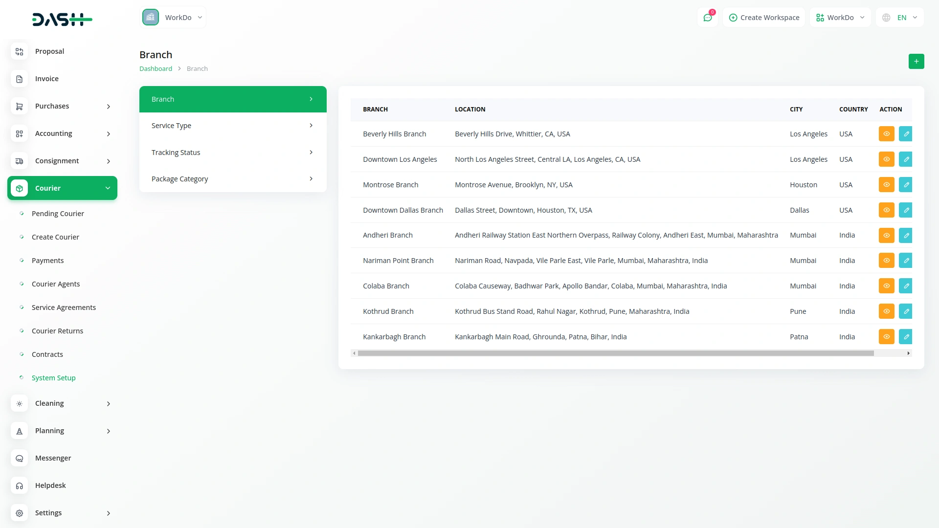Manage multiple courier branches, orders, and service agreements across different locations in one platform.