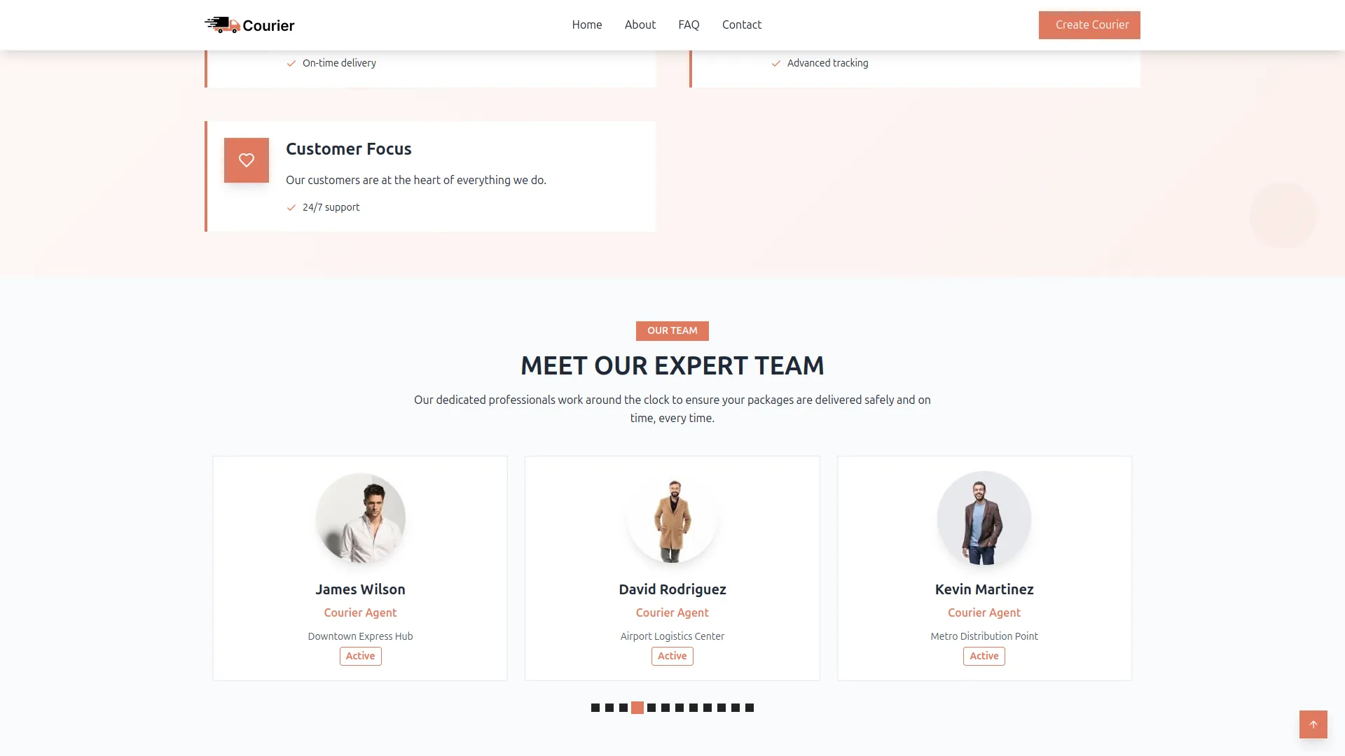 Coordinate your delivery team through comprehensive agent management that connects operations with customer experience. Create detailed agent profiles with contact information, branch assignments, and service areas. Active agents automatically appear in your website's team showcase, building customer trust through transparency. The system enables efficient resource allocation by assigning agents to specific routes and geographic locations. Track agent performance and manage workload distribution for optimal delivery efficiency.