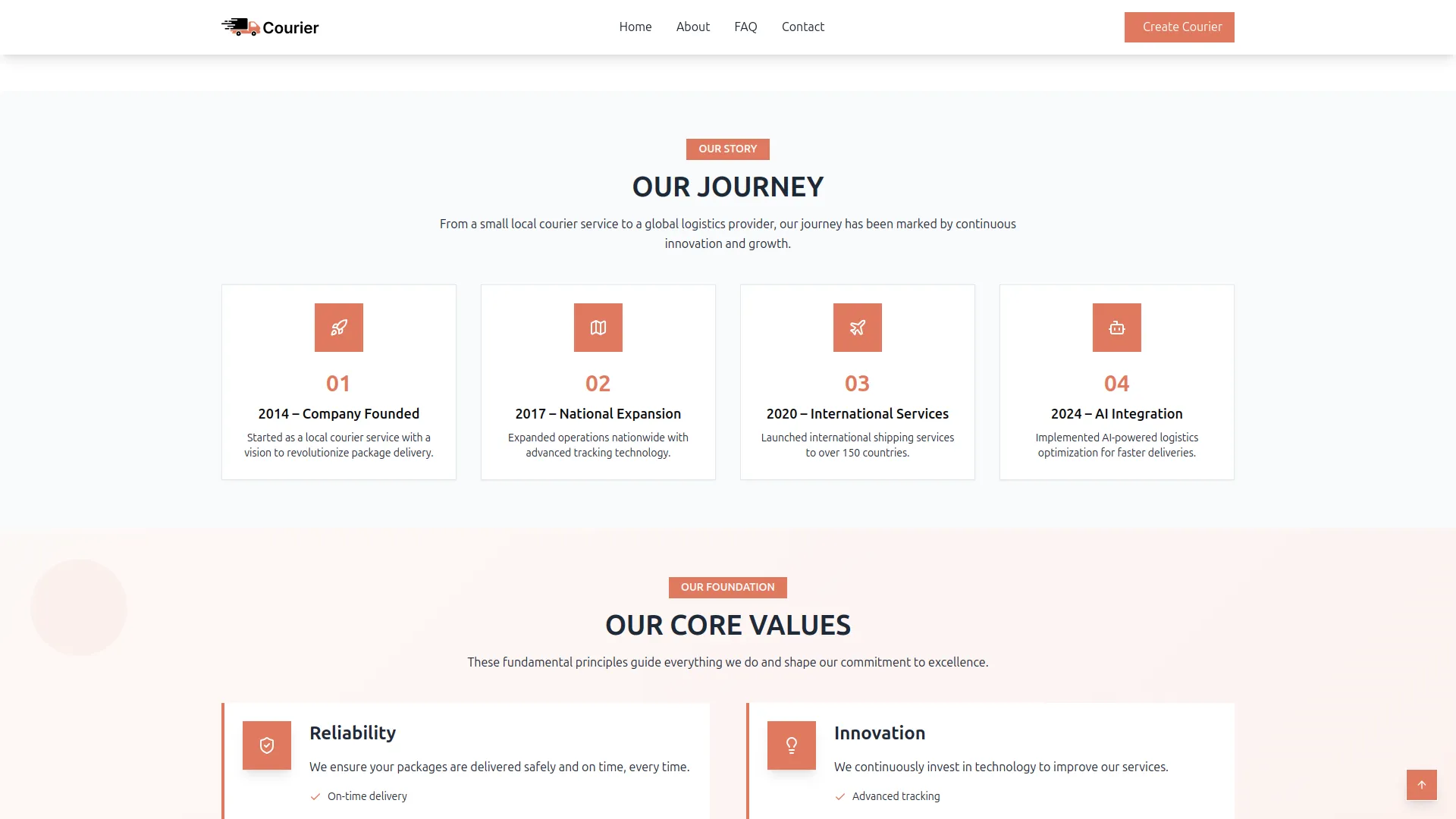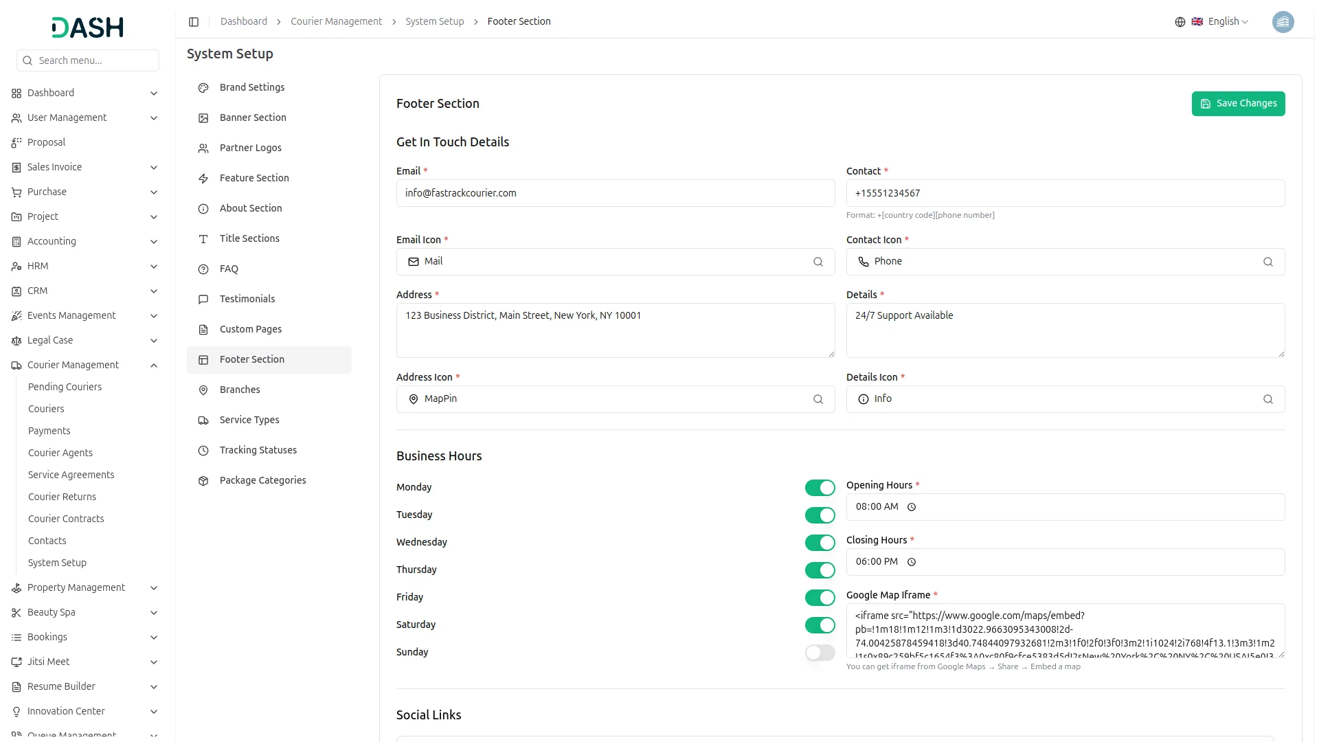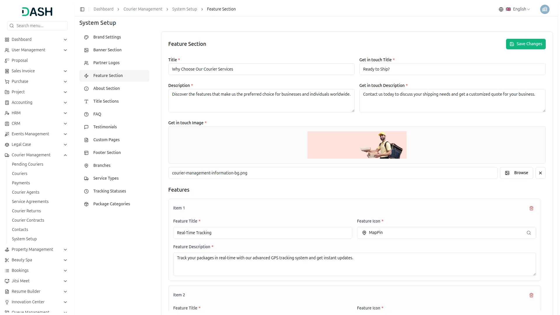 Transform your courier platform with a comprehensive system setup that builds your complete business presence. Configure your brand identity through logo uploads, site titles, and visual elements that appear across your entire customer-facing website. Build compelling homepage banners with customer statistics, success rates, and integrated tracking forms. Create feature showcases highlighting your service advantages like Real-Time Tracking, Secure Delivery, and 24/7 Support with custom icons. Develop comprehensive About pages with company stories, journey timelines, and team showcases that build customer trust and credibility.