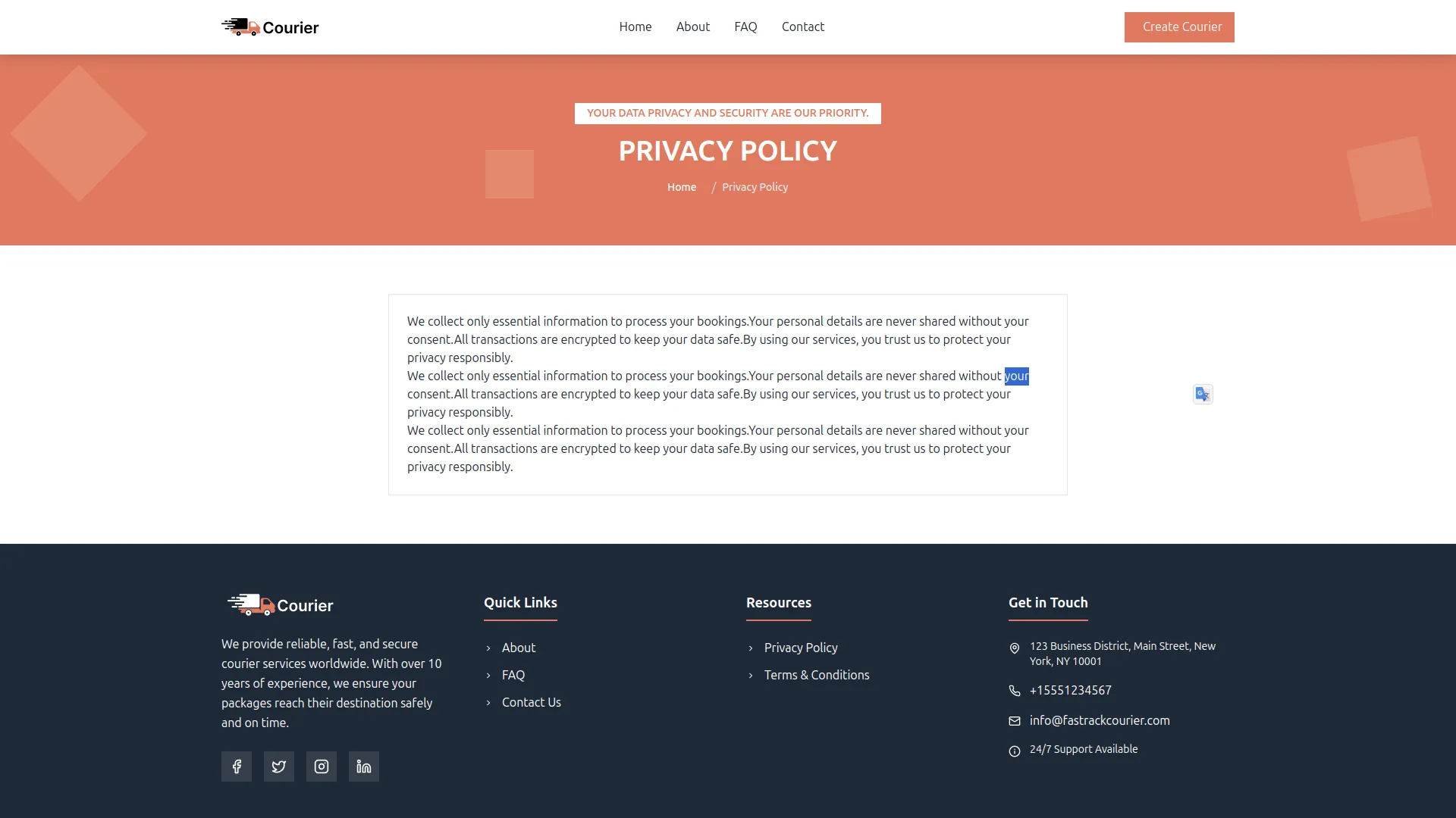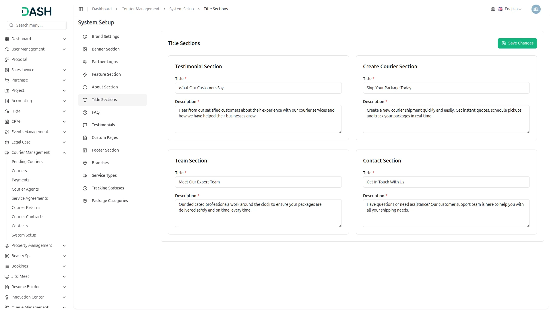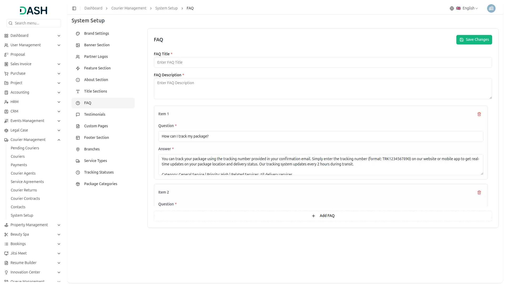 Transform your courier platform with a comprehensive system setup that builds your complete business presence. Configure your brand identity through logo uploads, site titles, and visual elements that appear across your entire customer-facing website. Build compelling homepage banners with customer statistics, success rates, and integrated tracking forms. Create feature showcases highlighting your service advantages like Real-Time Tracking, Secure Delivery, and 24/7 Support with custom icons. Develop comprehensive About pages with company stories, journey timelines, and team showcases that build customer trust and credibility.