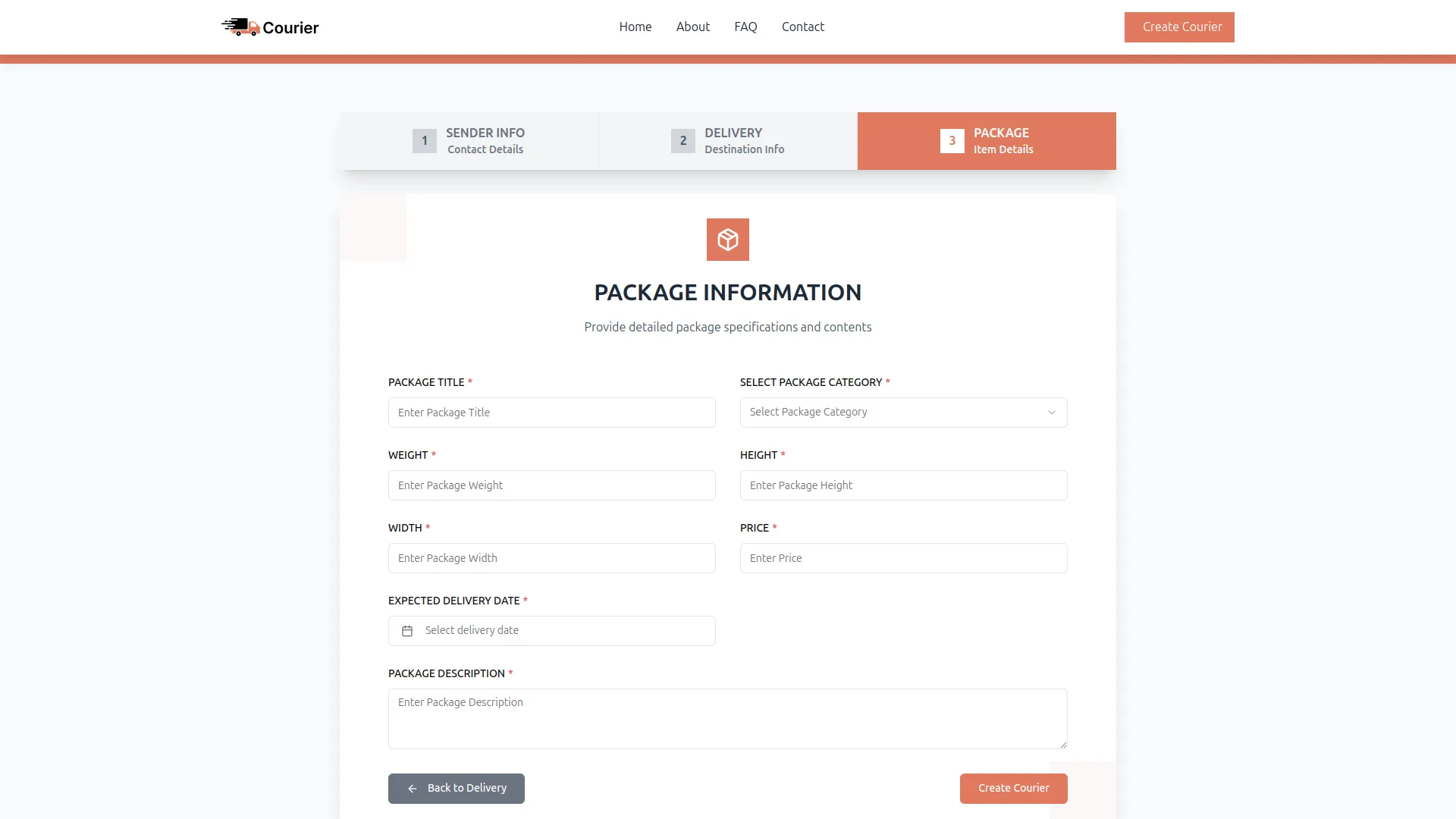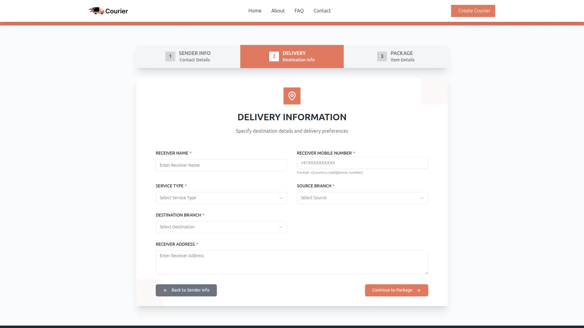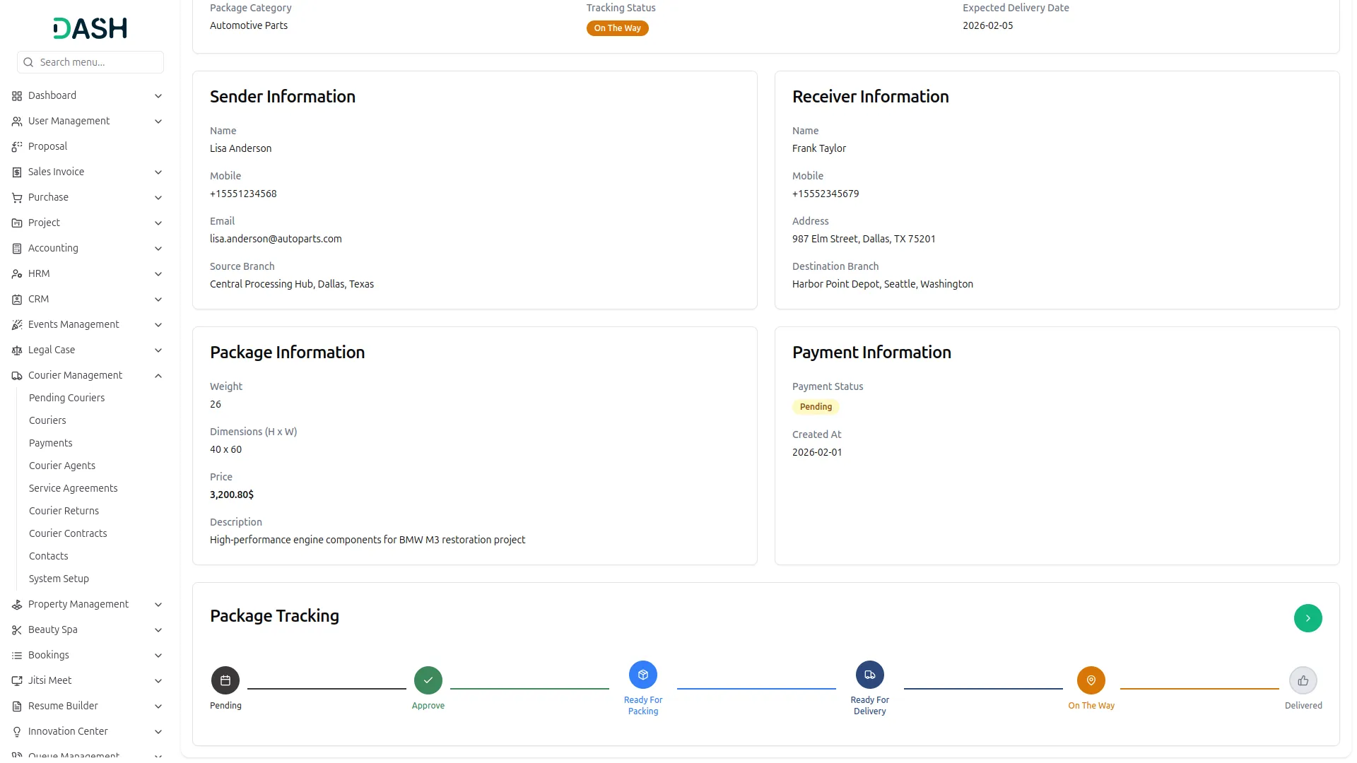 - Capture comprehensive package details including sender and receiver information
