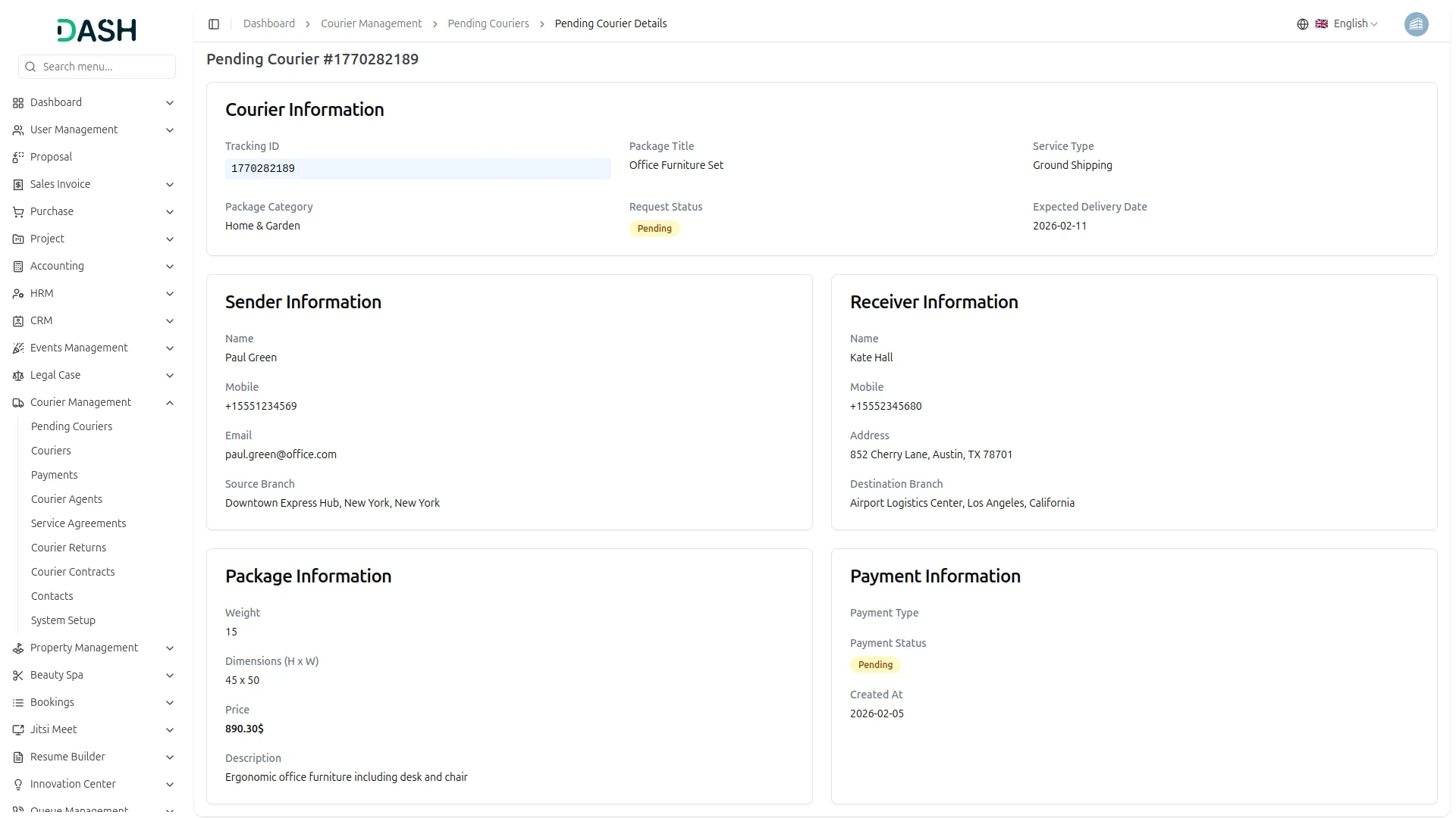 - Process payments with automatic linking to courier packages