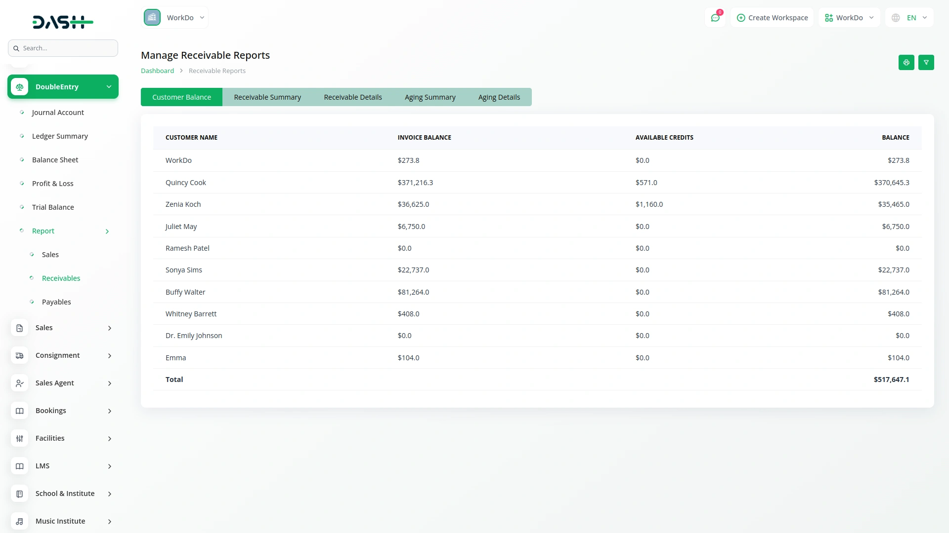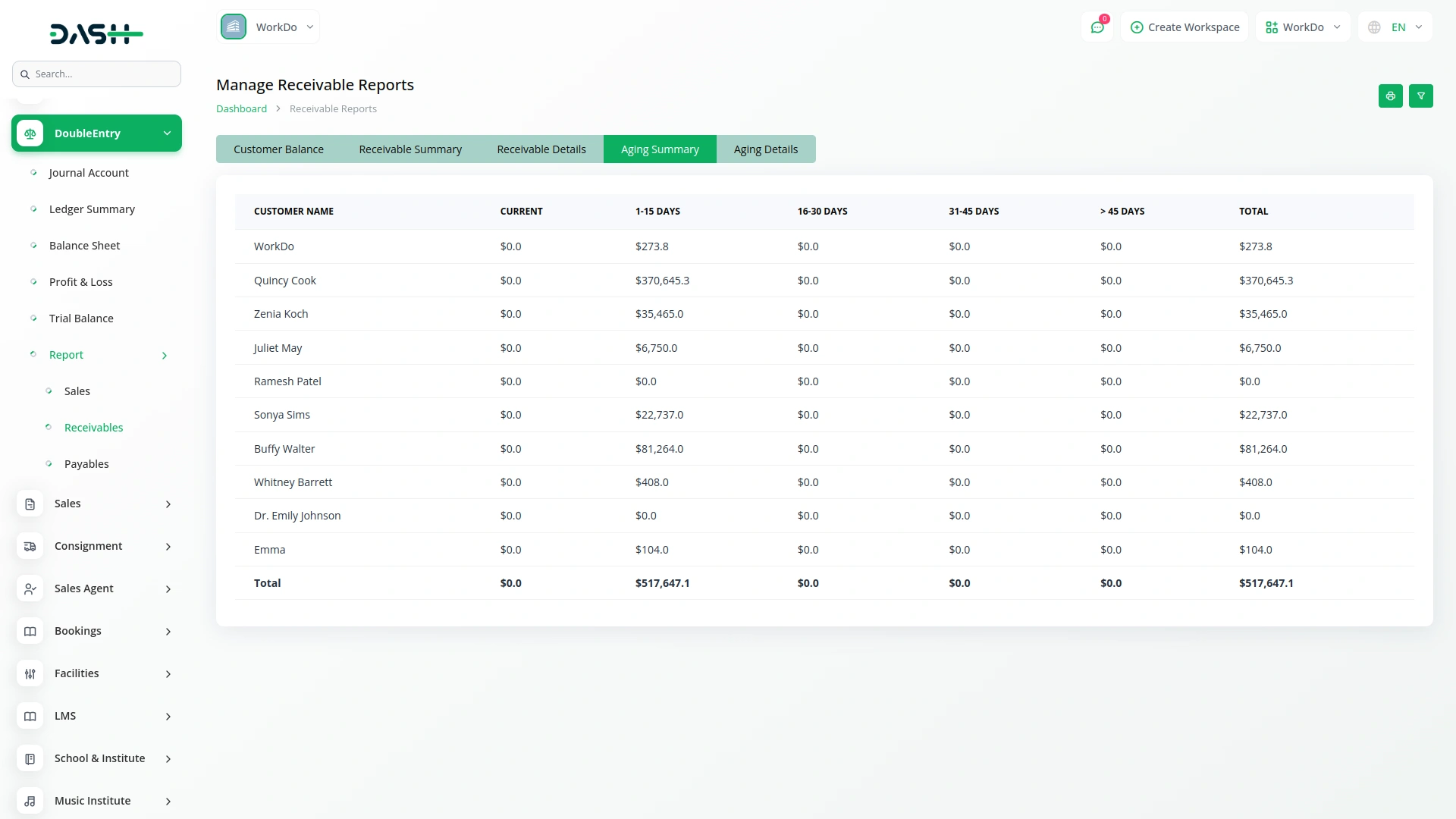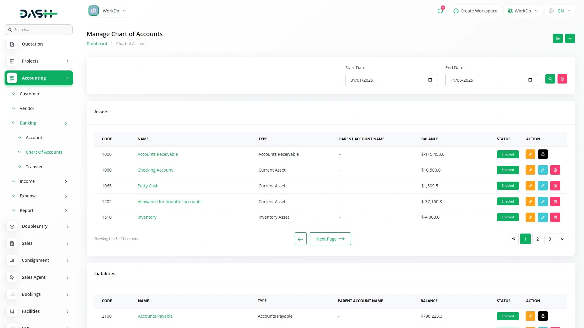 This single report consolidates all financial data by reflecting the complete chart of accounts in a balance sheet format, displaying debits on the debit side and credits on the credit side. When proposals, quotations, or retainers are converted into invoices, the system automatically generates corresponding journal entries. This ensures that all related financial activities are consistently captured and reflected across this unified report.