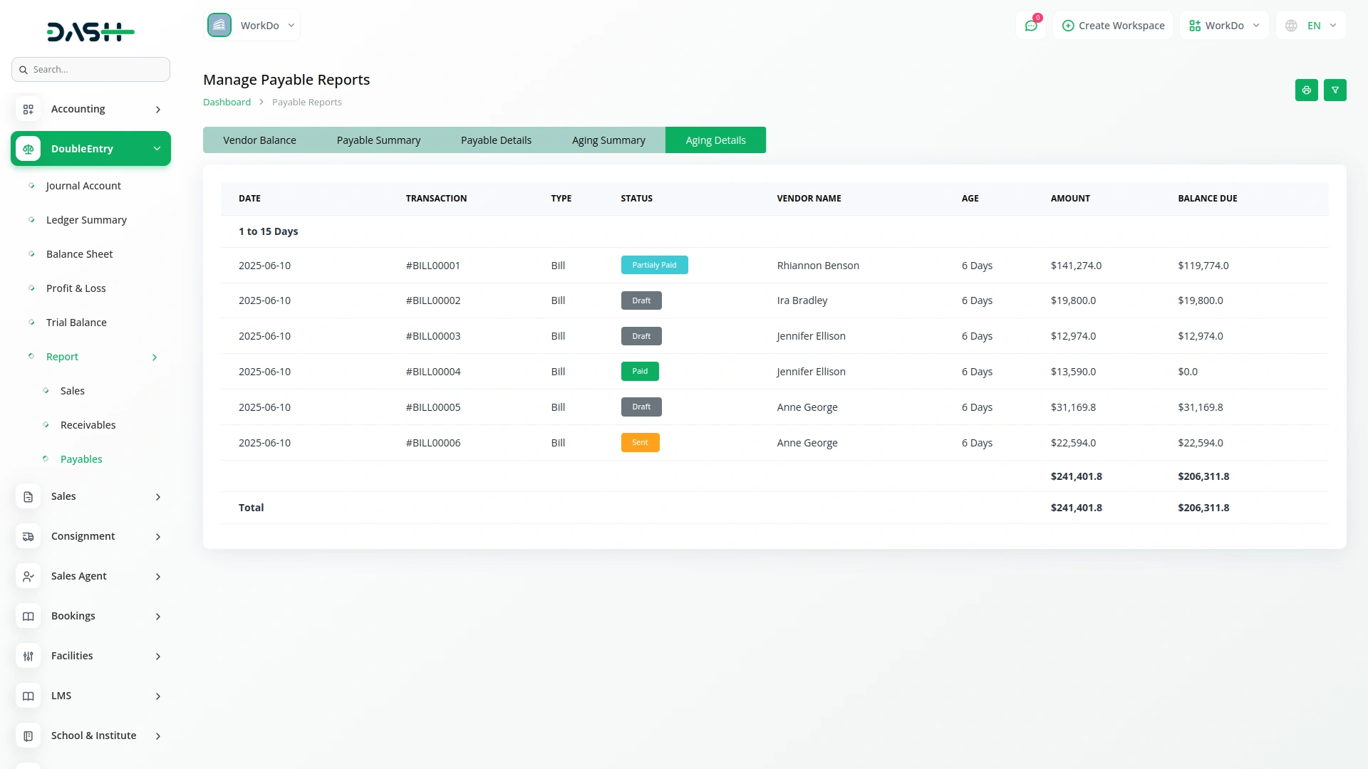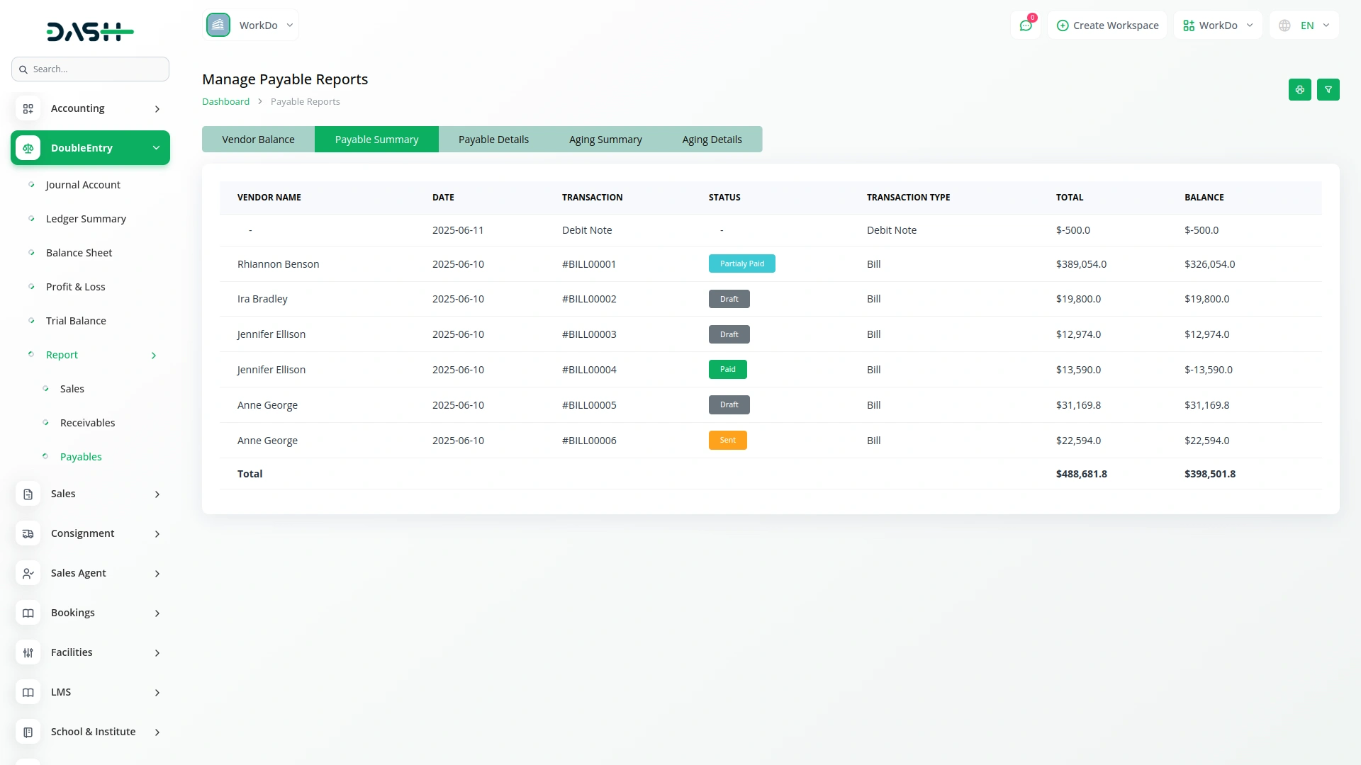 Unified Report Covering All Financial Transactions and Entries