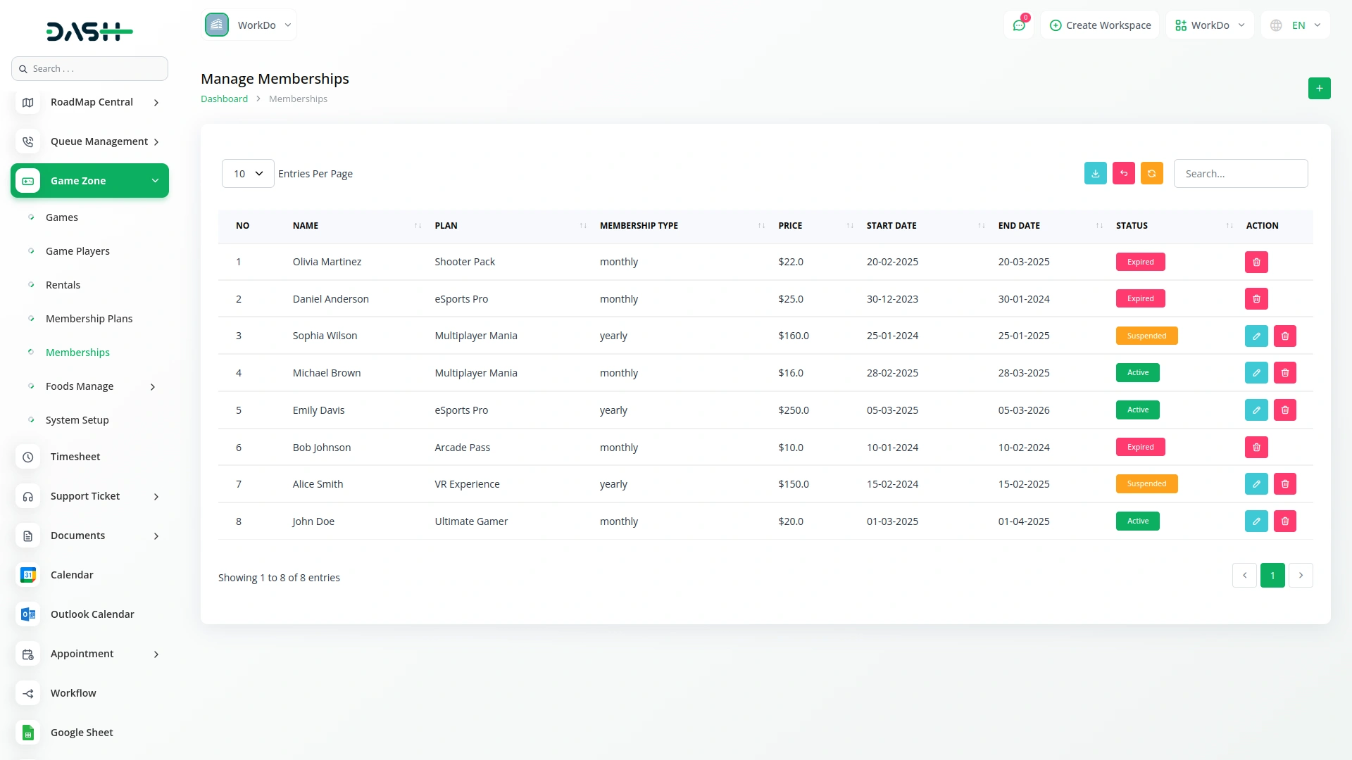 Design and manage membership plans that include monthly or yearly pricing, selected game access, and additional benefits. Each plan is customizable with included games and is linked to specific zones for localized control. Members are tracked by subscription type, pricing, and plan duration. This supports recurring revenue models and increases player engagement through exclusive benefits.
