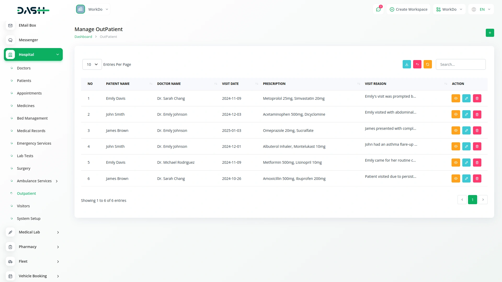Efficiently manage outpatient visits, including reason for visits, prescriptions, and follow-up care, ensuring streamlined operations.