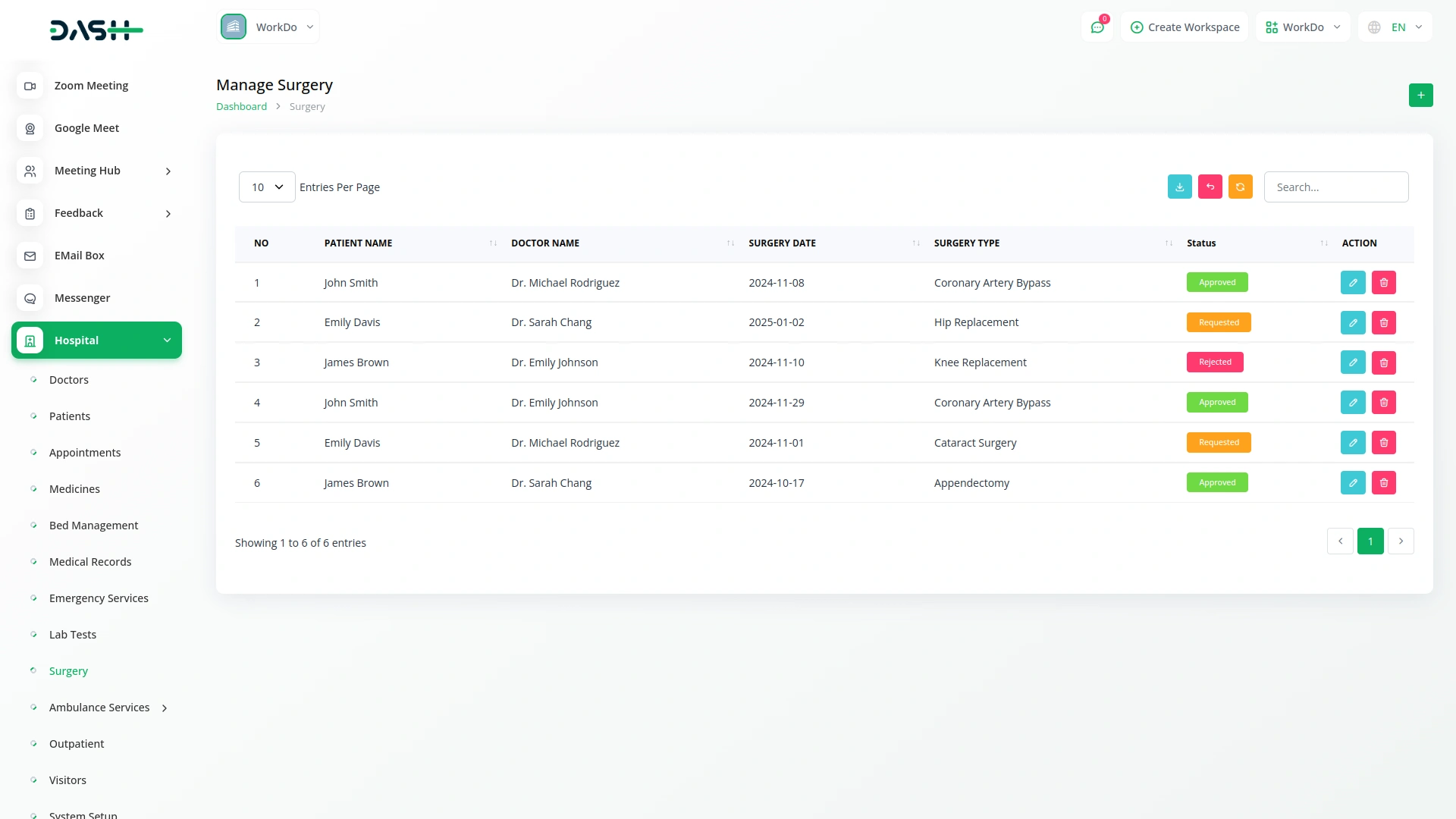 Schedule and track surgeries, including patient information, doctor assignments, and surgery types, ensuring that surgical procedures are carried out efficiently and on time.