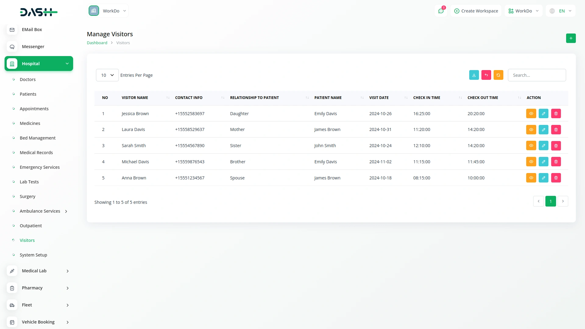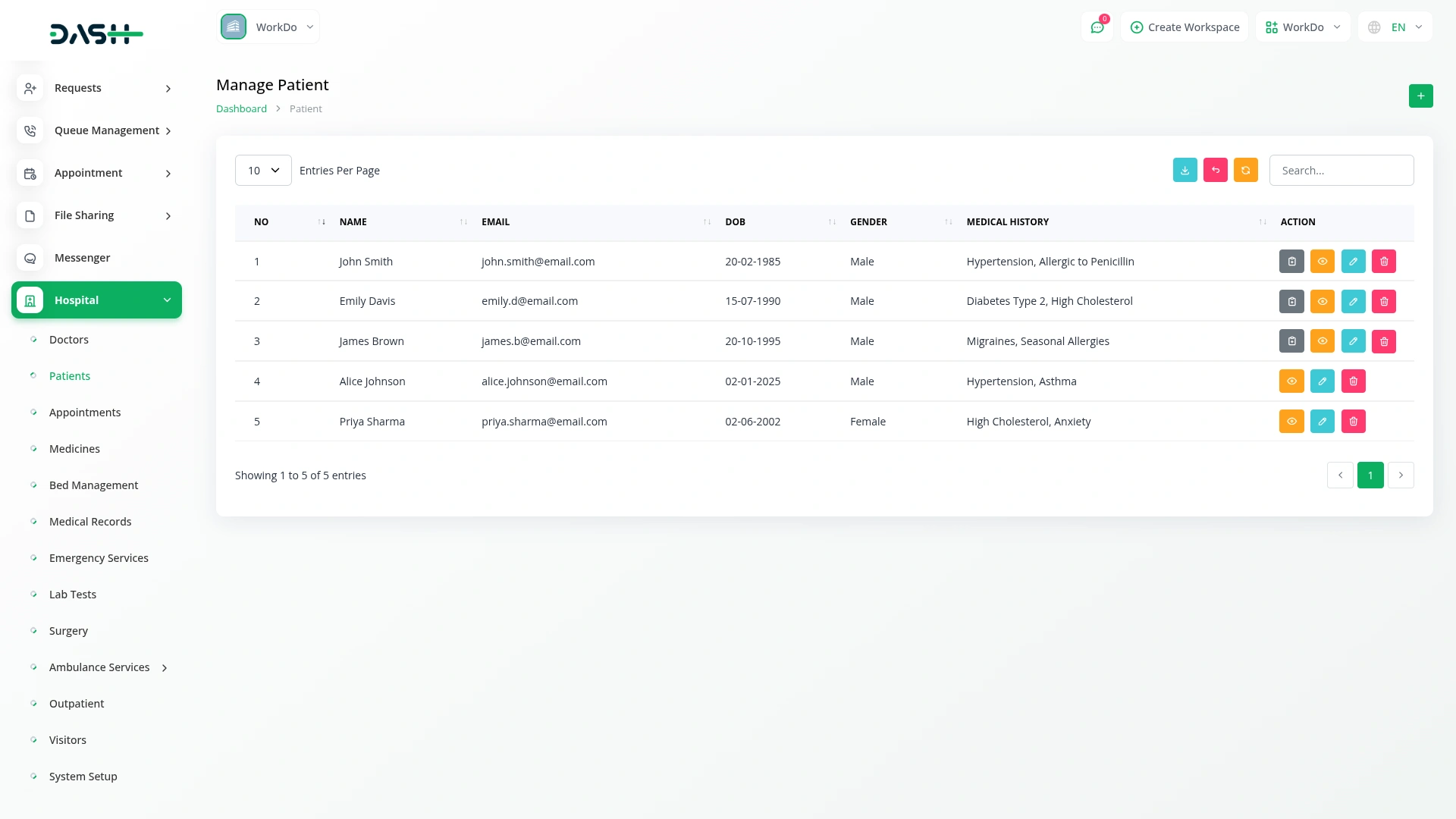 Keep comprehensive records of patient medical history, doctor assignments, and visit details, ensuring efficient treatment and better decision-making.