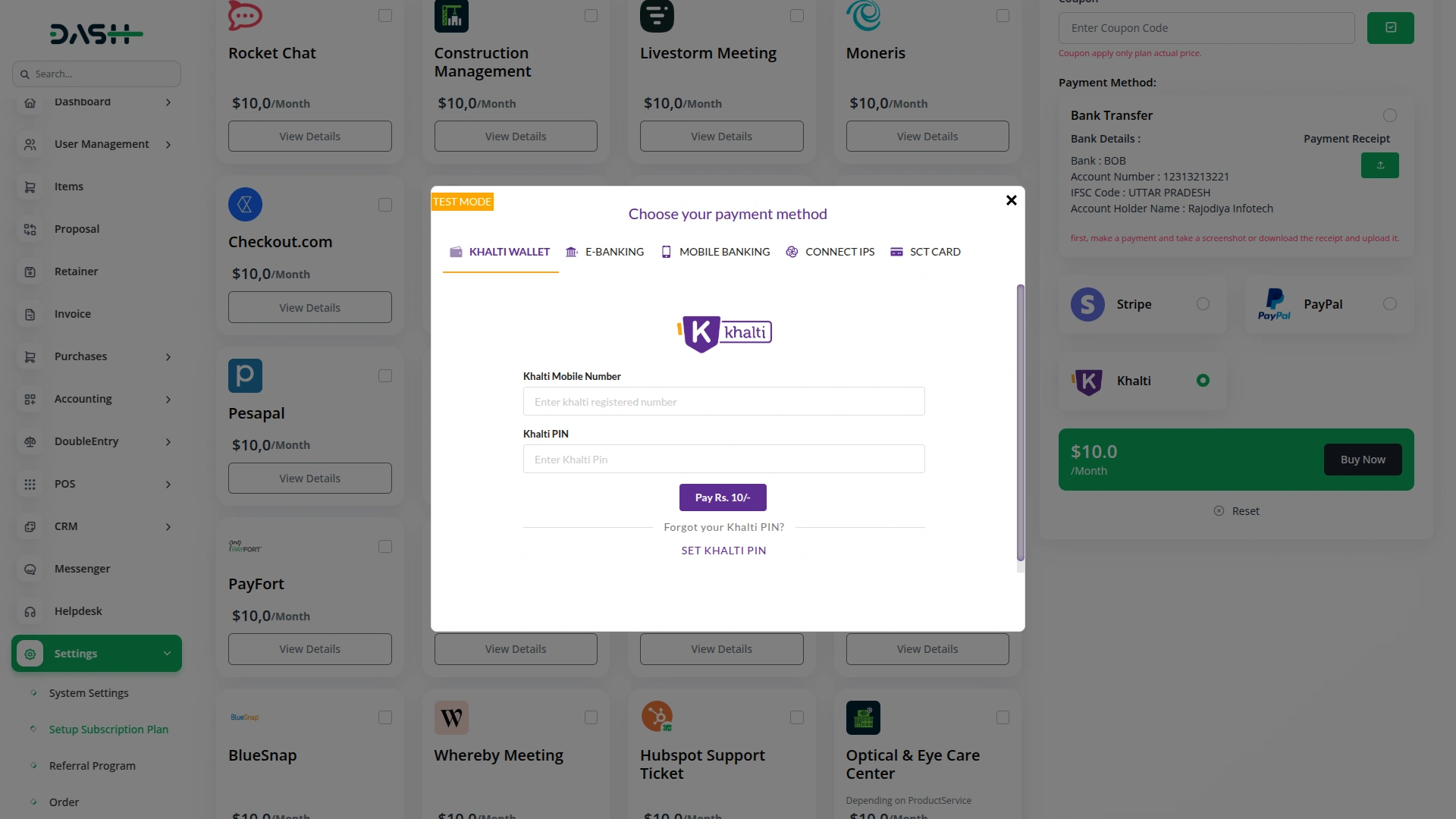 Khalti Payment allows you to manage recurring payments for subscription-based plans effortlessly. Enable customers to initiate and authorize plan payments securely, ensuring a smooth and consistent payment process for ongoing services.