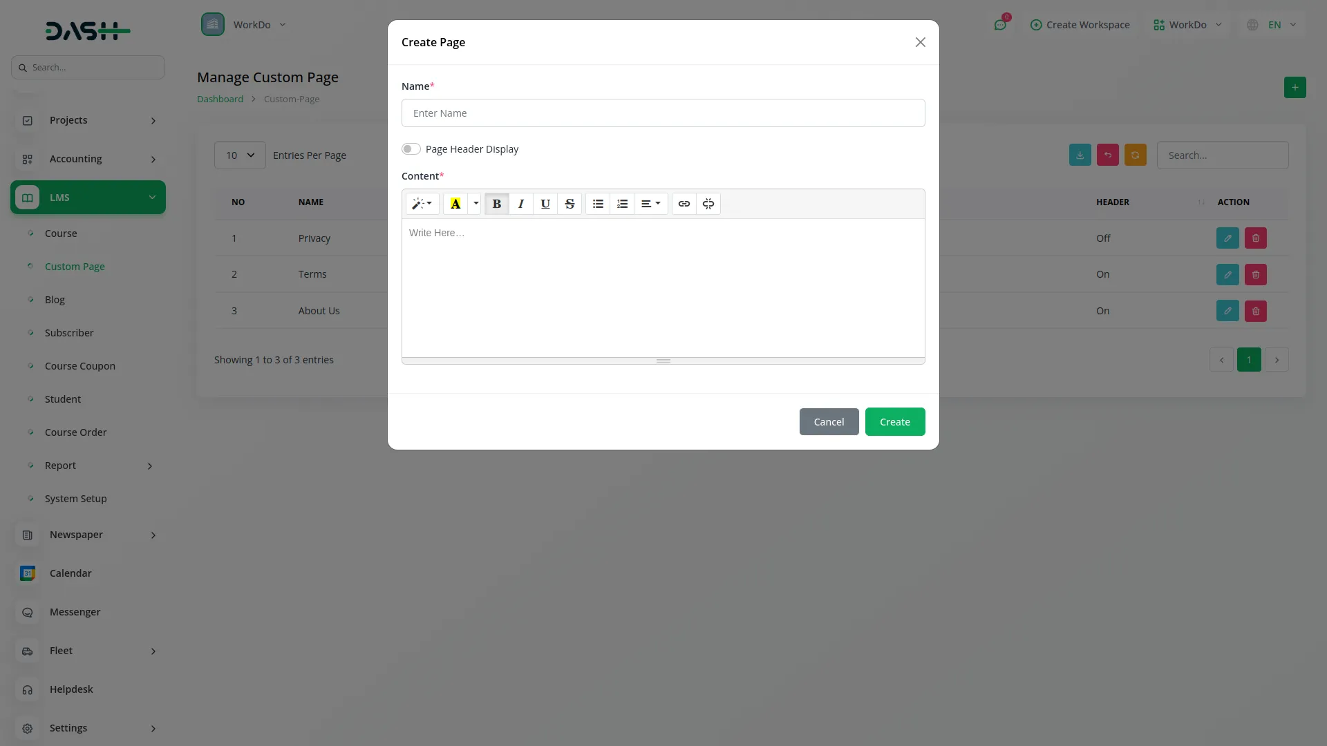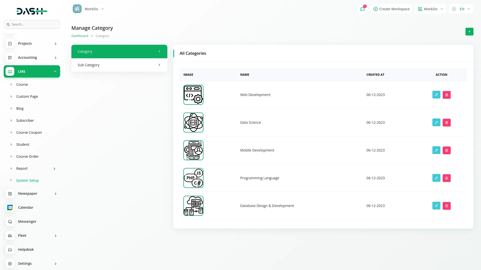 The LMS Course Section streamlines course creation, organization, and tracking with dynamic fields, Set course duration, language, pricing controls, and smart visibility settings. Admins can easily manage content while learners enjoy a seamless browsing and enrollment experience.