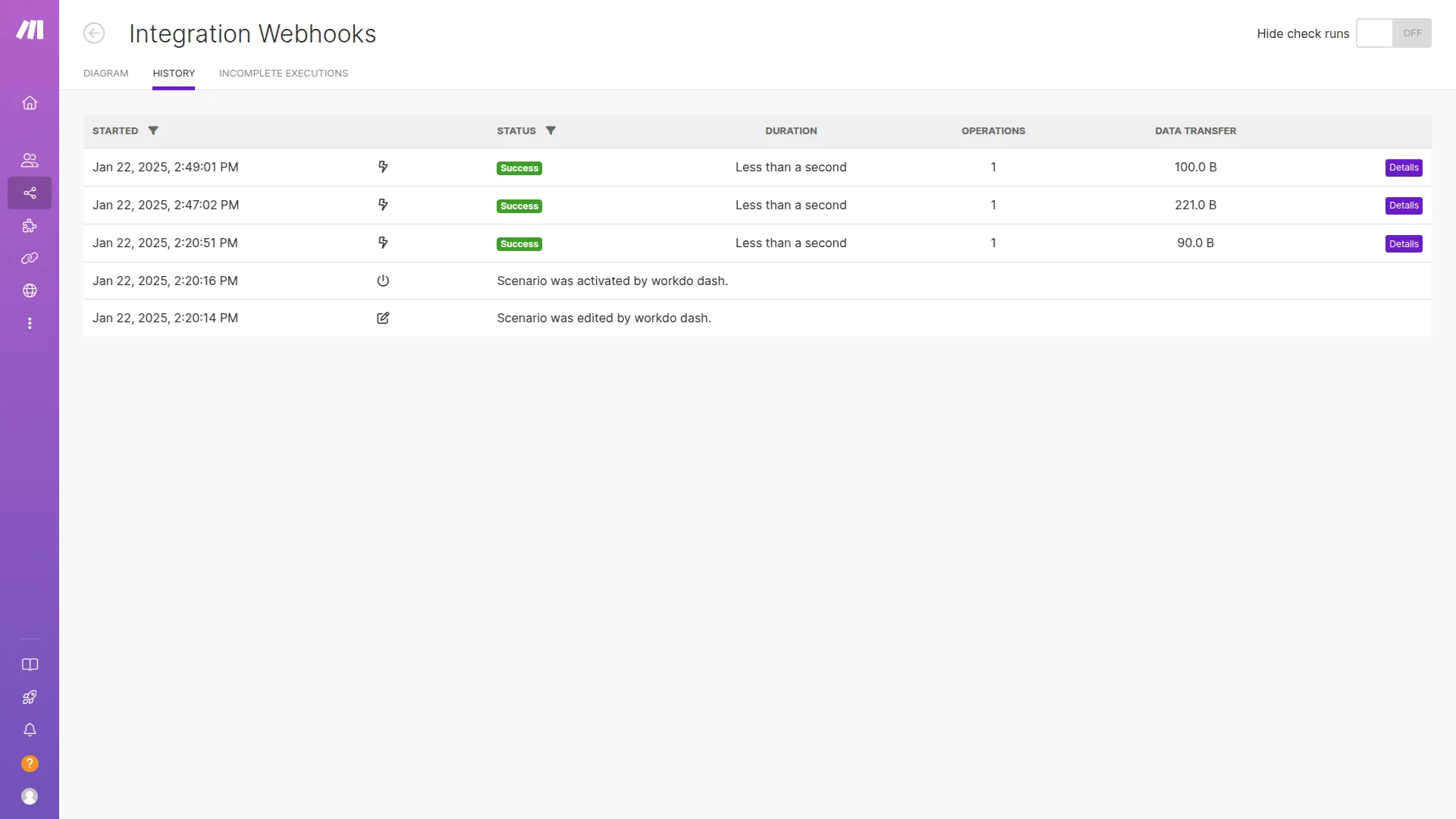 Enable instant data synchronization by triggering Make scenarios for business events across your entire ecosystem. Automatically send user creation, invoice updates, payment confirmations, patient records, student enrollments, and hundreds of other business events to make workflows for processing. Connect with third-party applications while maintaining real-time data accuracy across Hospital management, School Institutions, Fleet operations, and Property management systems.