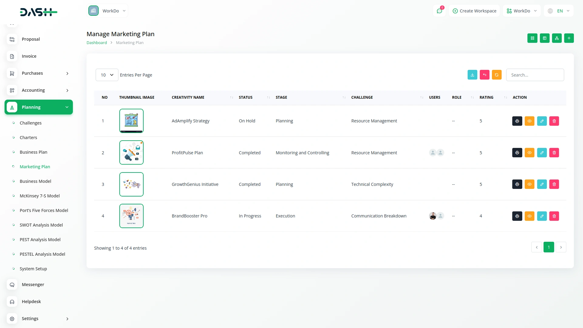 Easily manage your marketing plans with a clear, stage-based Kanban view. Marketing Plans are visually organized into columns based on their current stage, allowing users to quickly see how many marketing plans exist under each stage. This layout offers a streamlined overview of your entire marketing workflow, making it simple to track progress, identify bottlenecks, and maintain momentum across all campaigns.