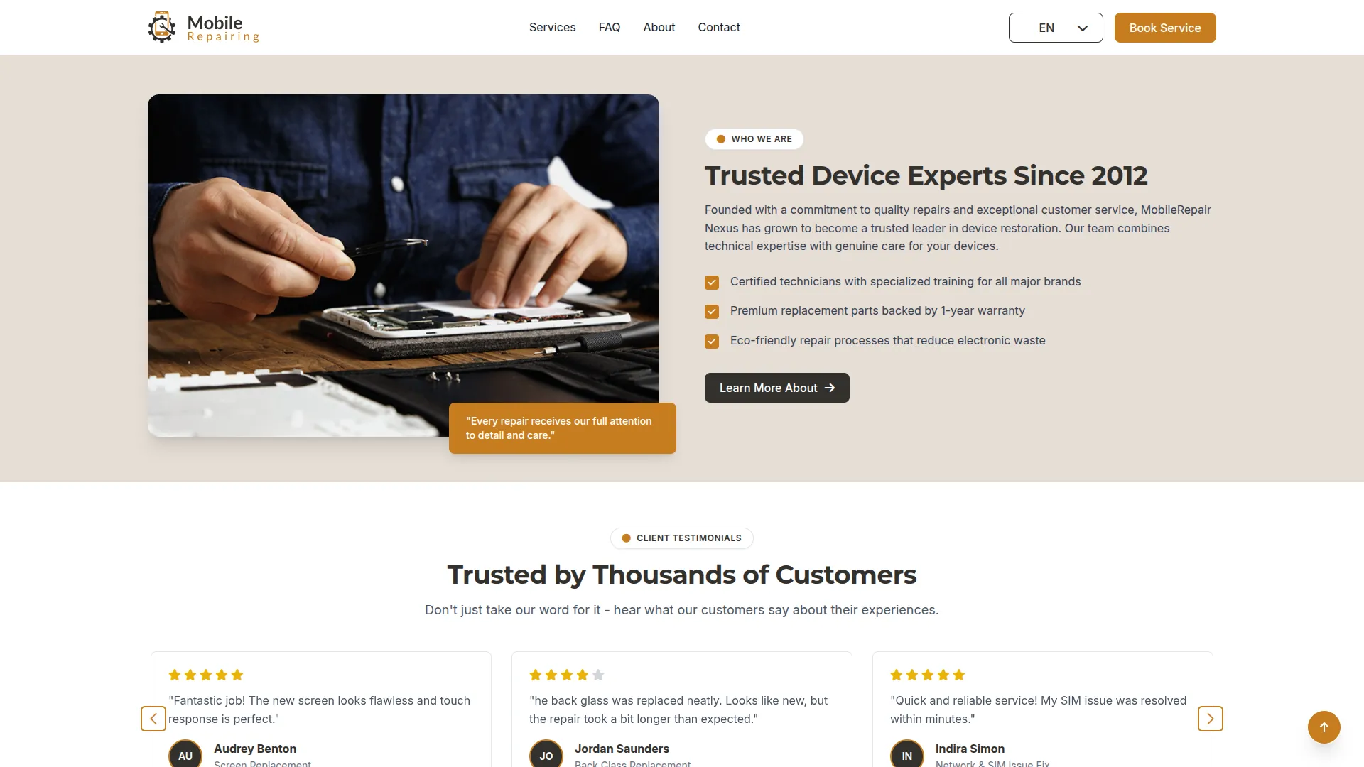 Handle repair requests for mobile devices, assigning technicians based on the complexity of the task.