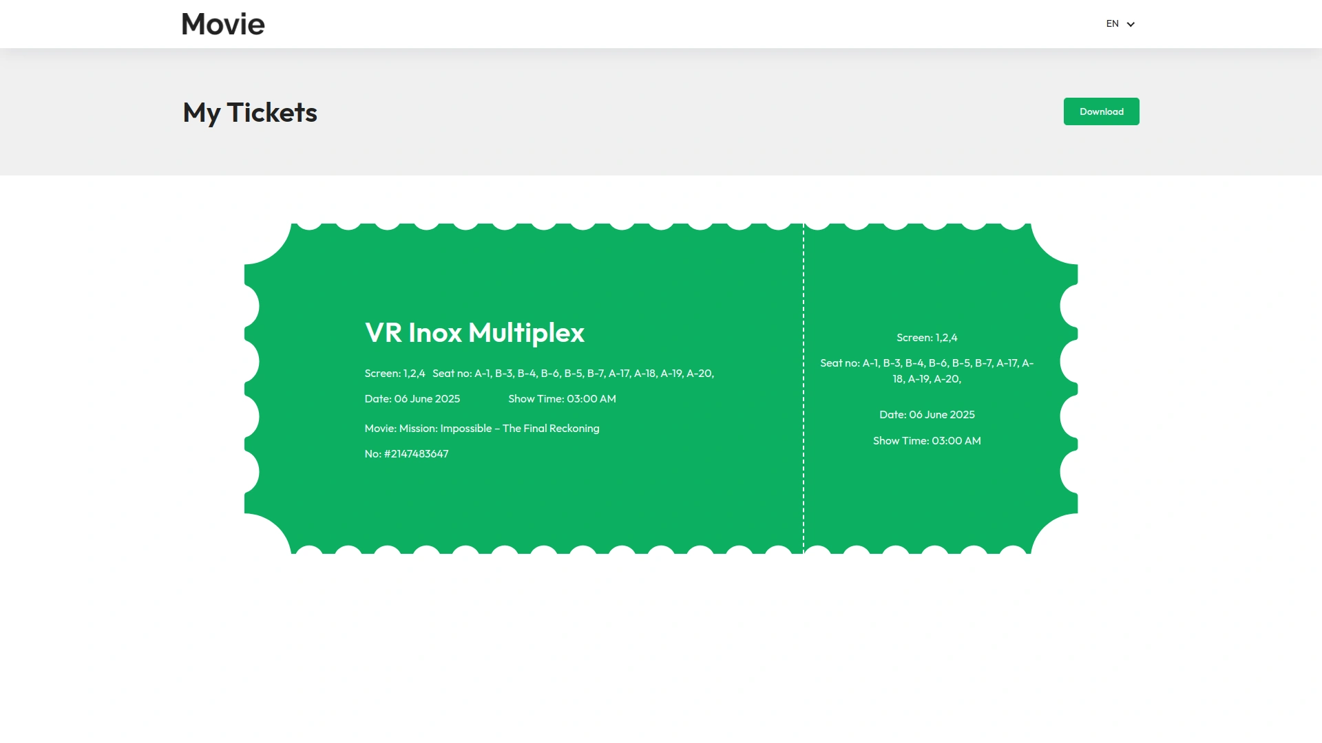- View complete booking details, including seat numbers and ticket prices.