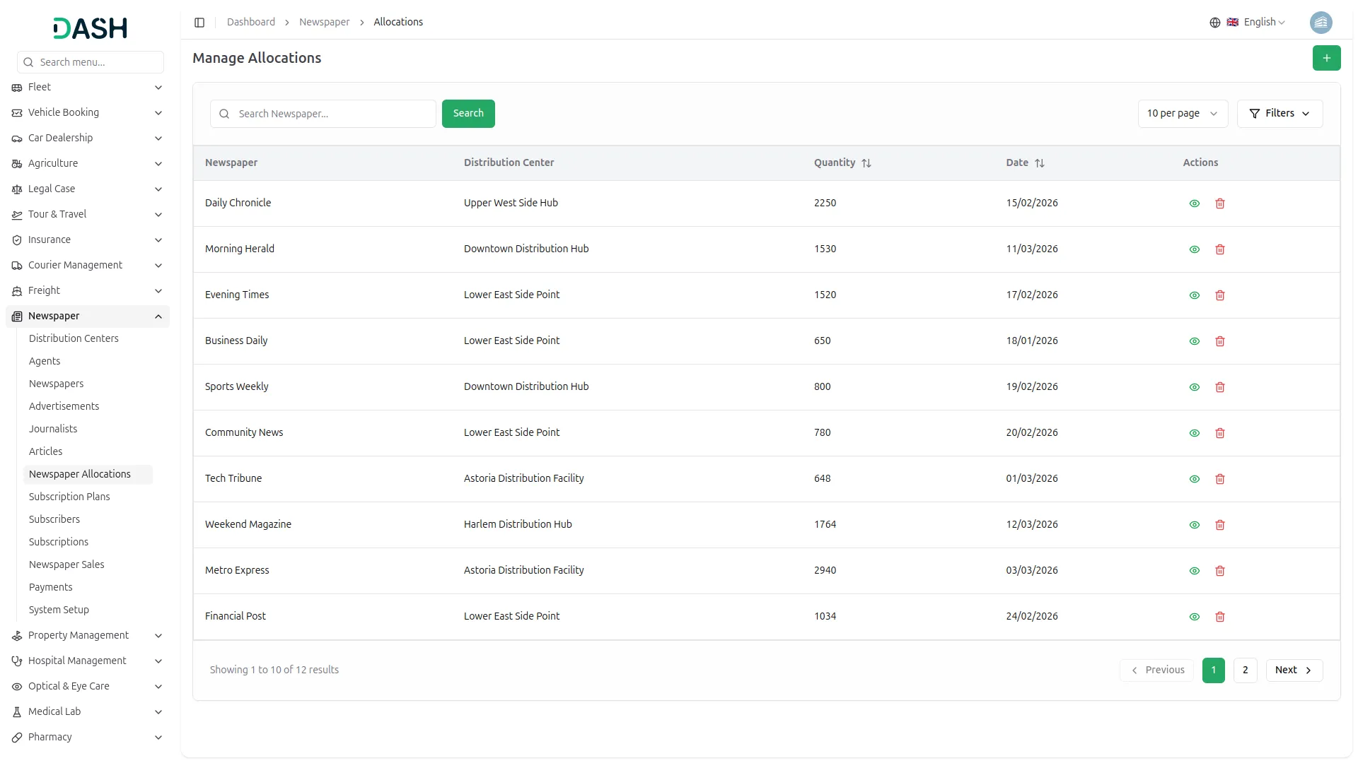 Managing newspaper distribution efficiently requires precise coordination of stock and locations. The system registers distribution centers with complete details and assigns controlled quantities of inventory to each one. Real-time tracking ensures visibility of available stock before making new allocations. This helps prevent over-allocation and enables smooth, organized supply management across all locations.