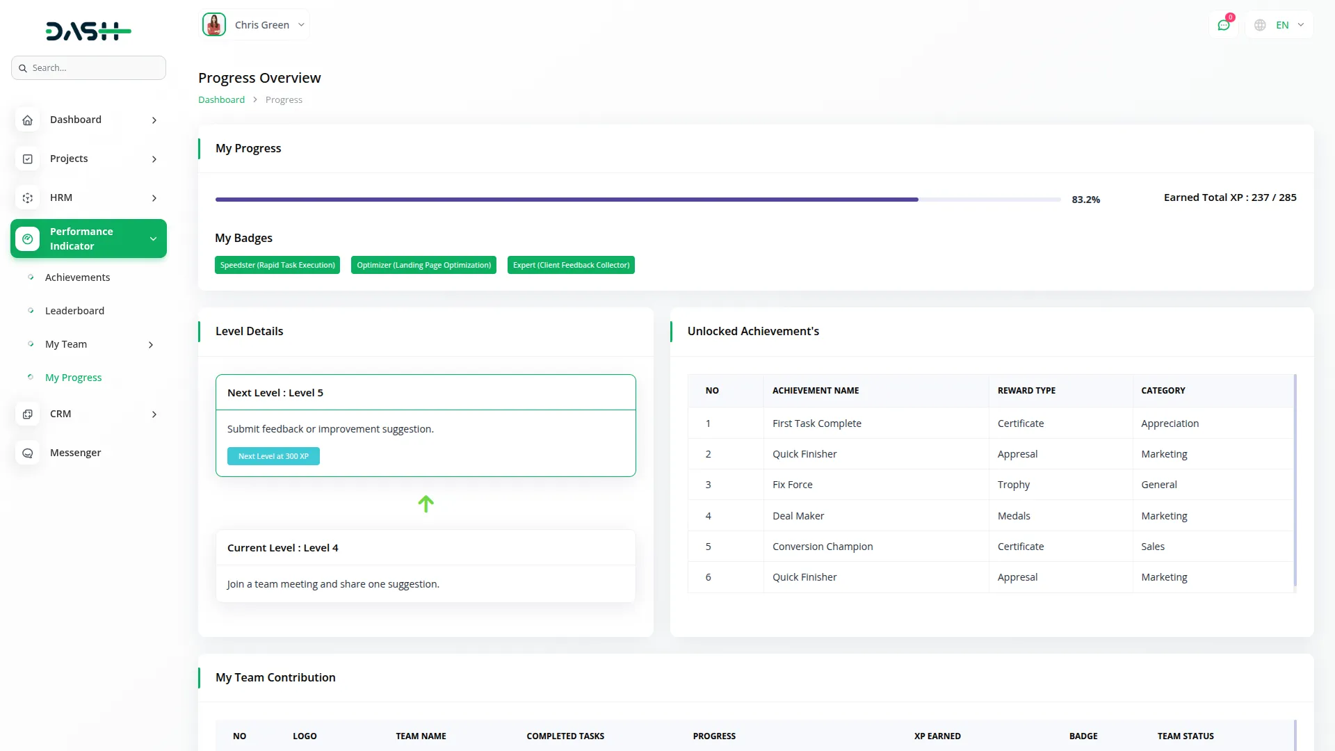 • Supports both team and individual achievements