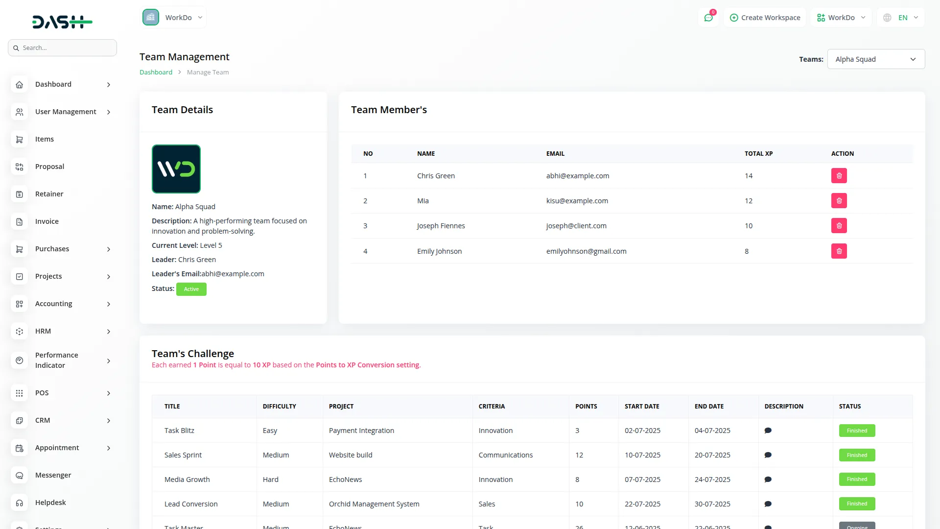 Team management starts with creating a team and assigning a leader. The team leader can then log in, assign tasks to members based on the assigned challenge, and manage task details like title, time, and deadlines. As tasks are completed, the leader distributes earned XP. The system also includes a Points to XP Conversion setting, where you can define how many XP each point is worth (e.g., 1 point = 10 XP), ensuring accurate and customizable performance tracking.