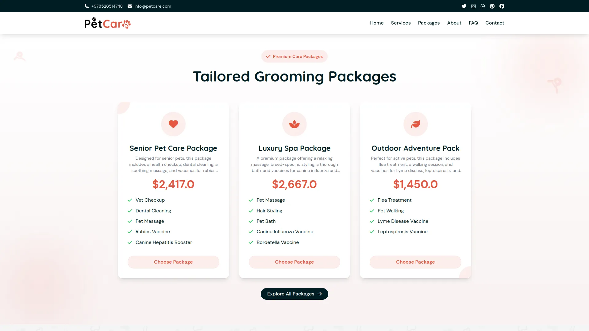 The PetCare website module offers a fully customizable platform to showcase your brand, highlight services, and connect with pet lovers. Personalize key sections like the homepage, services, grooming packages, adoption gallery, and contact details to reflect your center’s identity. An integrated communication system manages inquiries, adoption requests, and appointments from submission to resolution. All website settings, banners, social media links, FAQs, and reviews are managed through the Perfect System Setup, giving you complete control to ensure a consistent, user-friendly, and engaging experience across all pages.