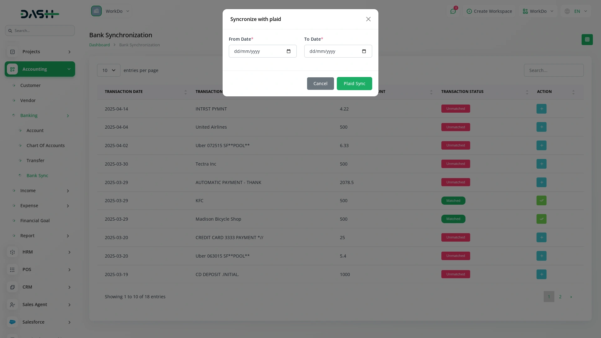 Once configured, syncing your bank transactions takes only a few clicks. Navigate to the banking section, specify the date range you want to review, and click the sync button. Within seconds, all relevant transactions from your linked account will be fetched and listed. This kind of direct access to your real-time financial activity lets you keep your books consistently updated, giving you better control over your cash flow and day-to-day operations.