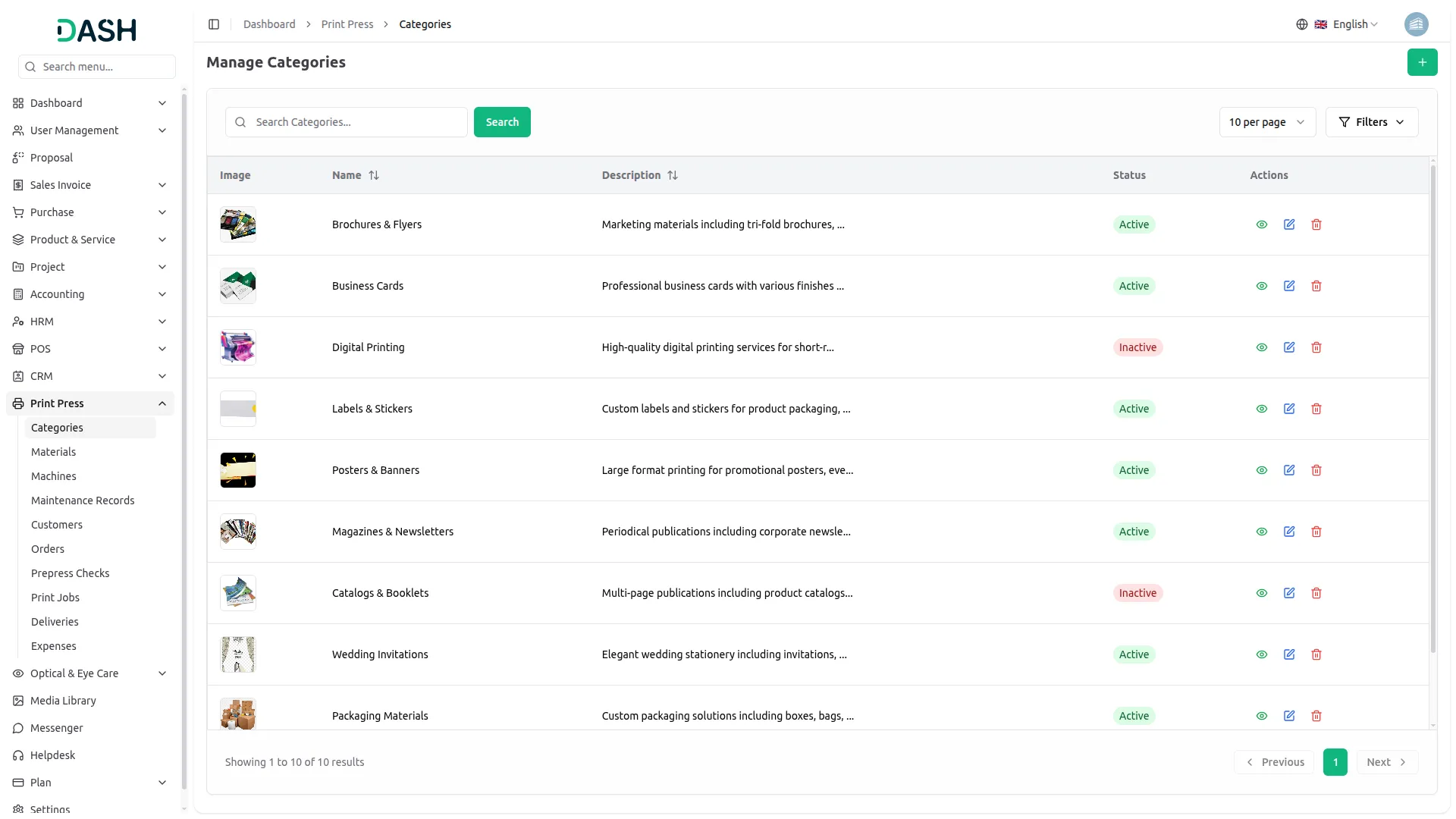 A print operation depends heavily on a well-managed supply chain. PrintPress structures materials management by organizing consumables and substrates into clear categories. It enables tracking of unit pricing and maintaining accurate stock levels. Properly catalogued materials linked to orders and expenses support smarter procurement decisions. This helps prevent shortages and disruptions during critical production runs.