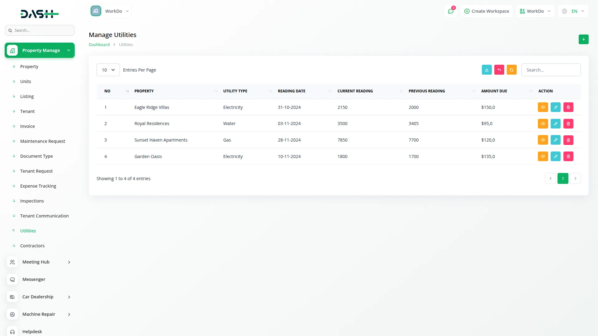 Manage utility billing directly through the property management system, allowing for easy payment processing.