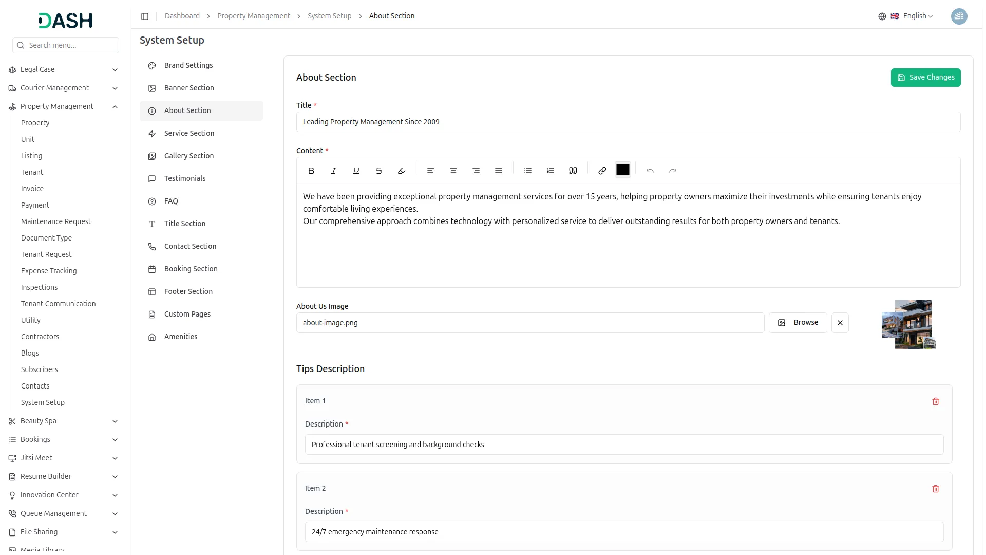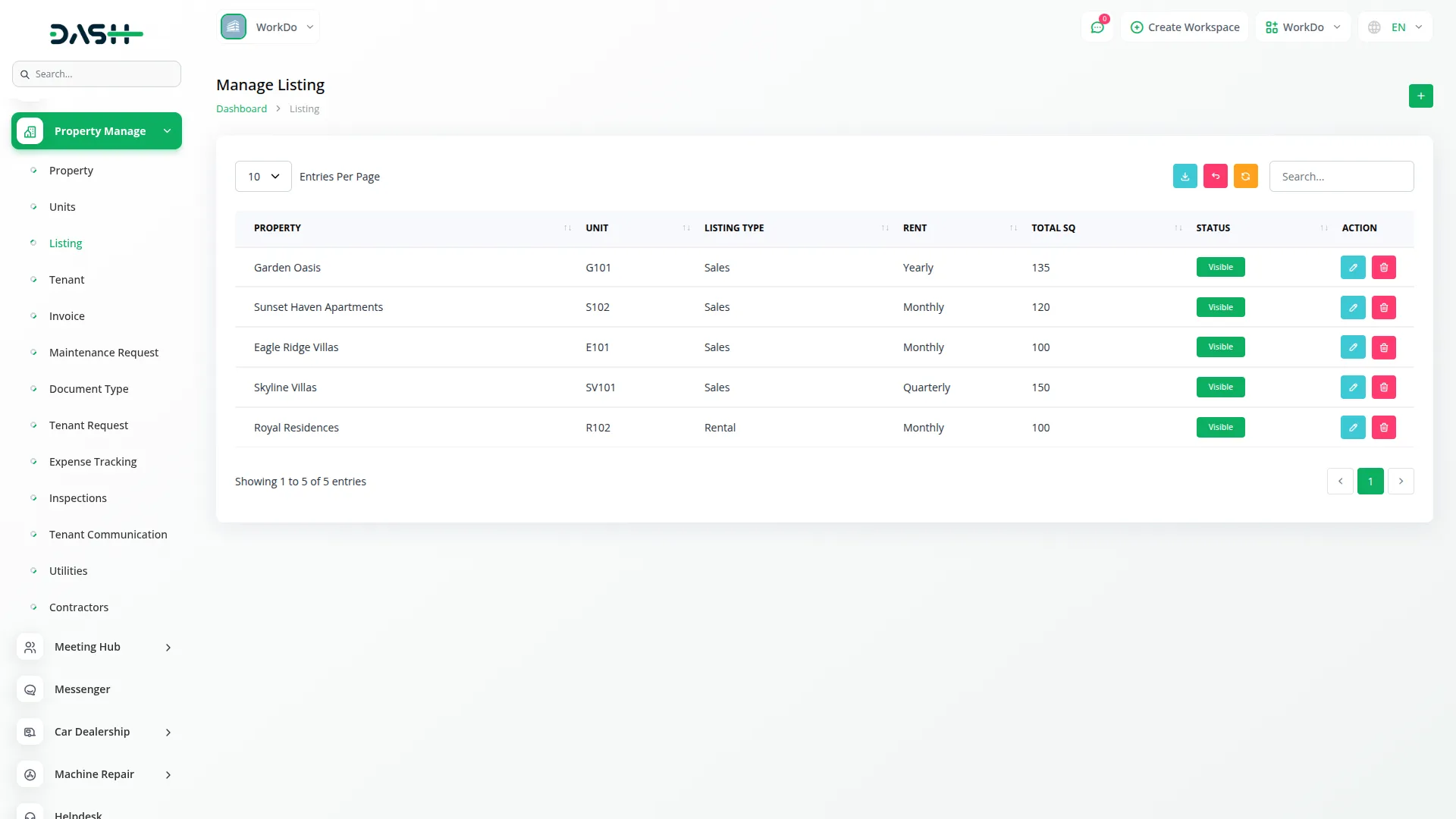 Easily manage and list available properties for rent or sale, including detailed descriptions and images for potential tenants or buyers.
