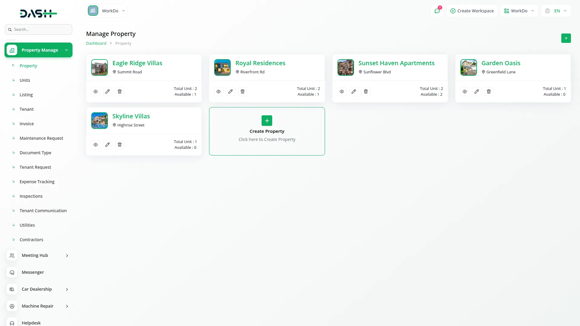 Organize unlimited properties with comprehensive information systems, including detailed location coordinates for GPS mapping, financial terms tracking, security deposit management, and maintenance charge calculations. Upload multiple high-resolution property images with individual management capabilities, including preview, download, and delete functions for professional presentation. Create unlimited units per property with detailed specifications for bedrooms, bathrooms, kitchen features, and amenities selection from predefined lists.