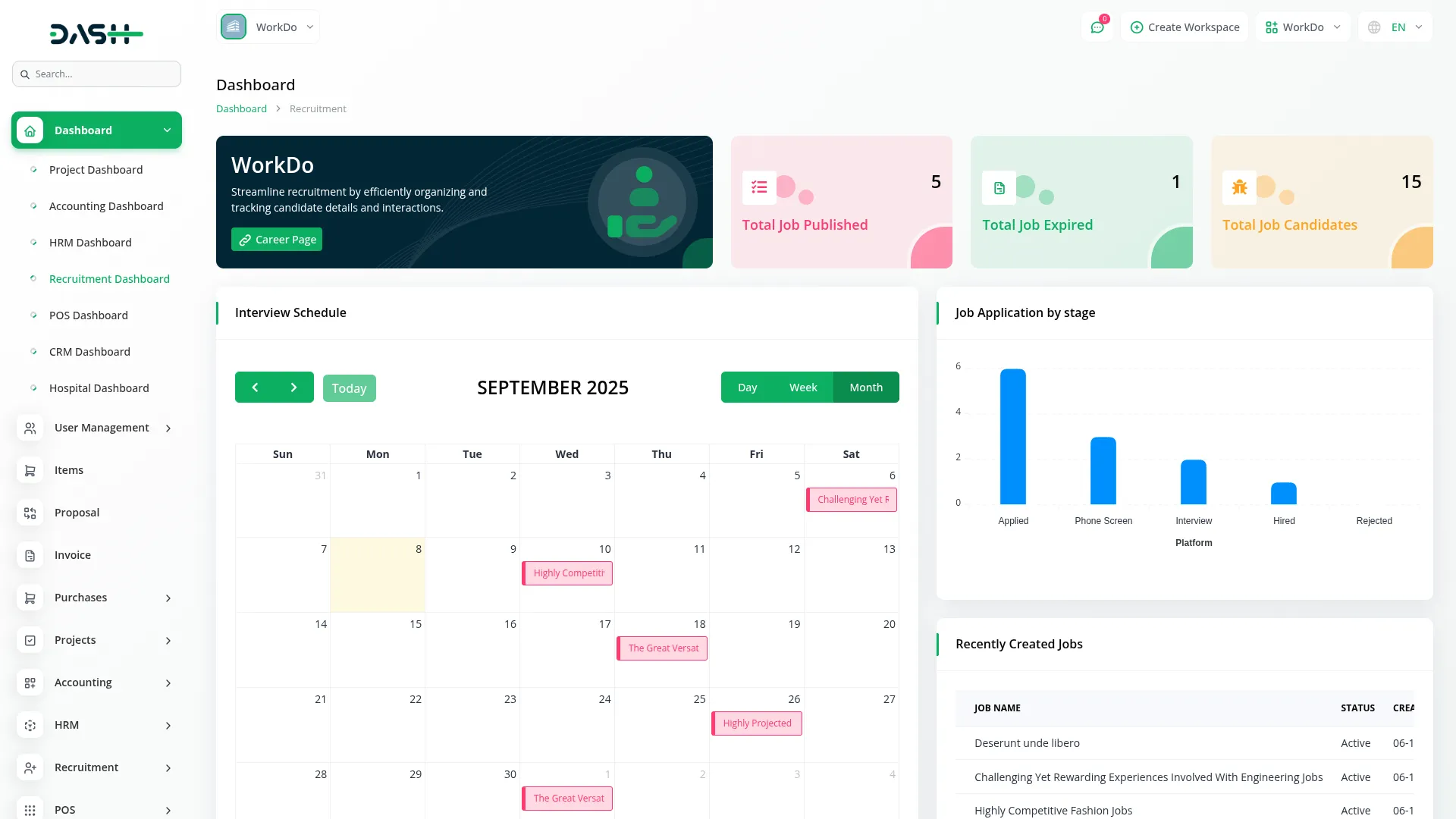 Create and manage job postings with detailed customization options, including position requirements, salary ranges, and application deadlines. Configure recruitment settings for internal positions or client-specific roles with branch and location targeting. Set up custom screening questions and application requirements, such as cover letters or specific documentation. The system supports job templates for recurring positions, streamlining the posting process and ensuring consistency across similar roles.