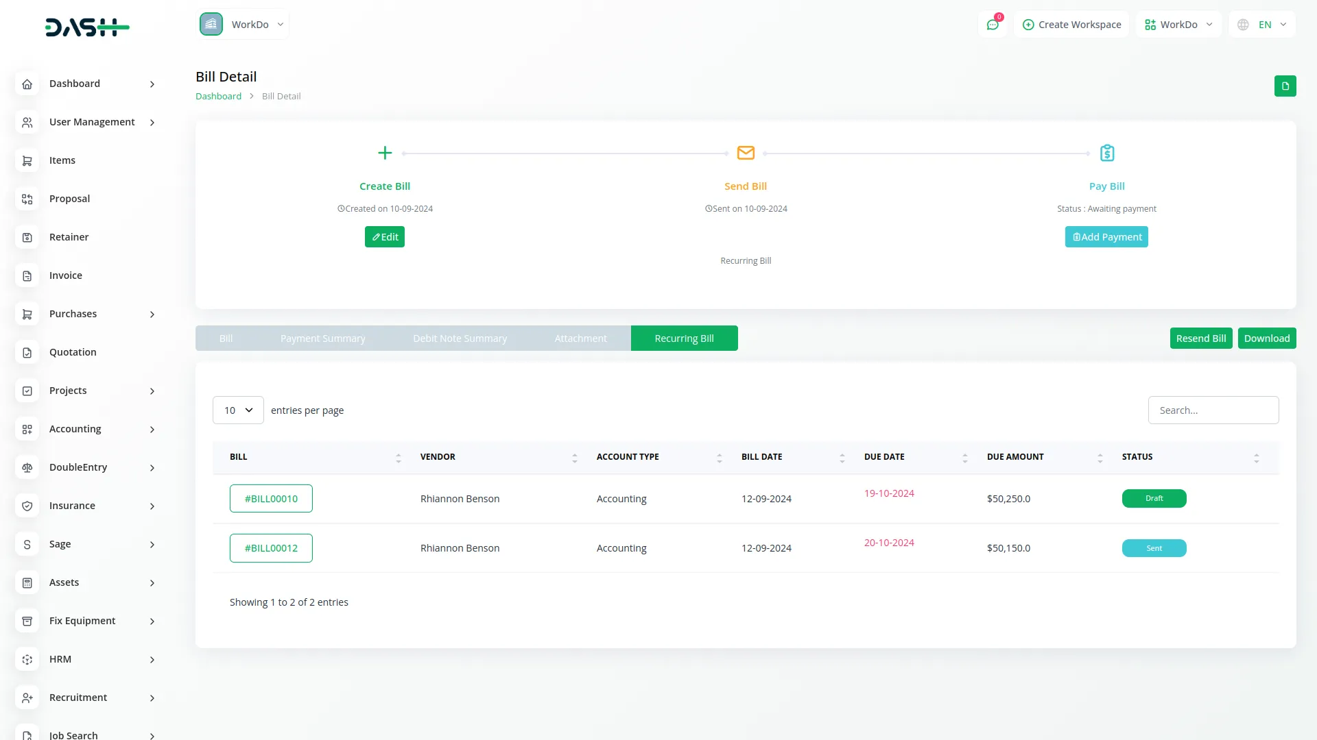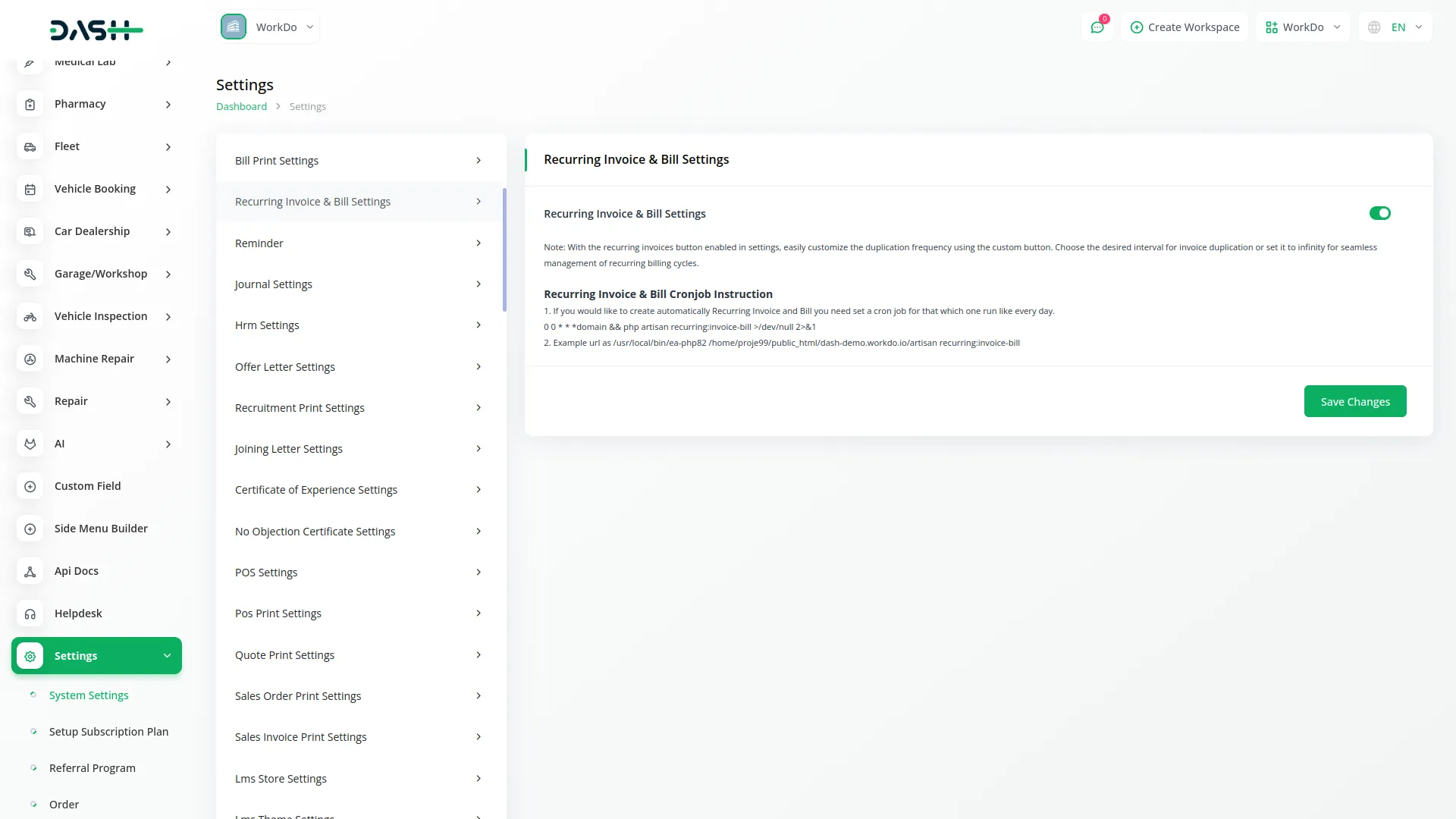 Recurring Invoice/Bill – Dash SaaS Add-On