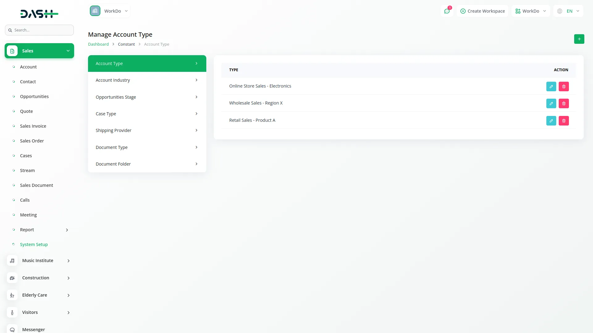 - Custom setup of system values like industry, provider, and type