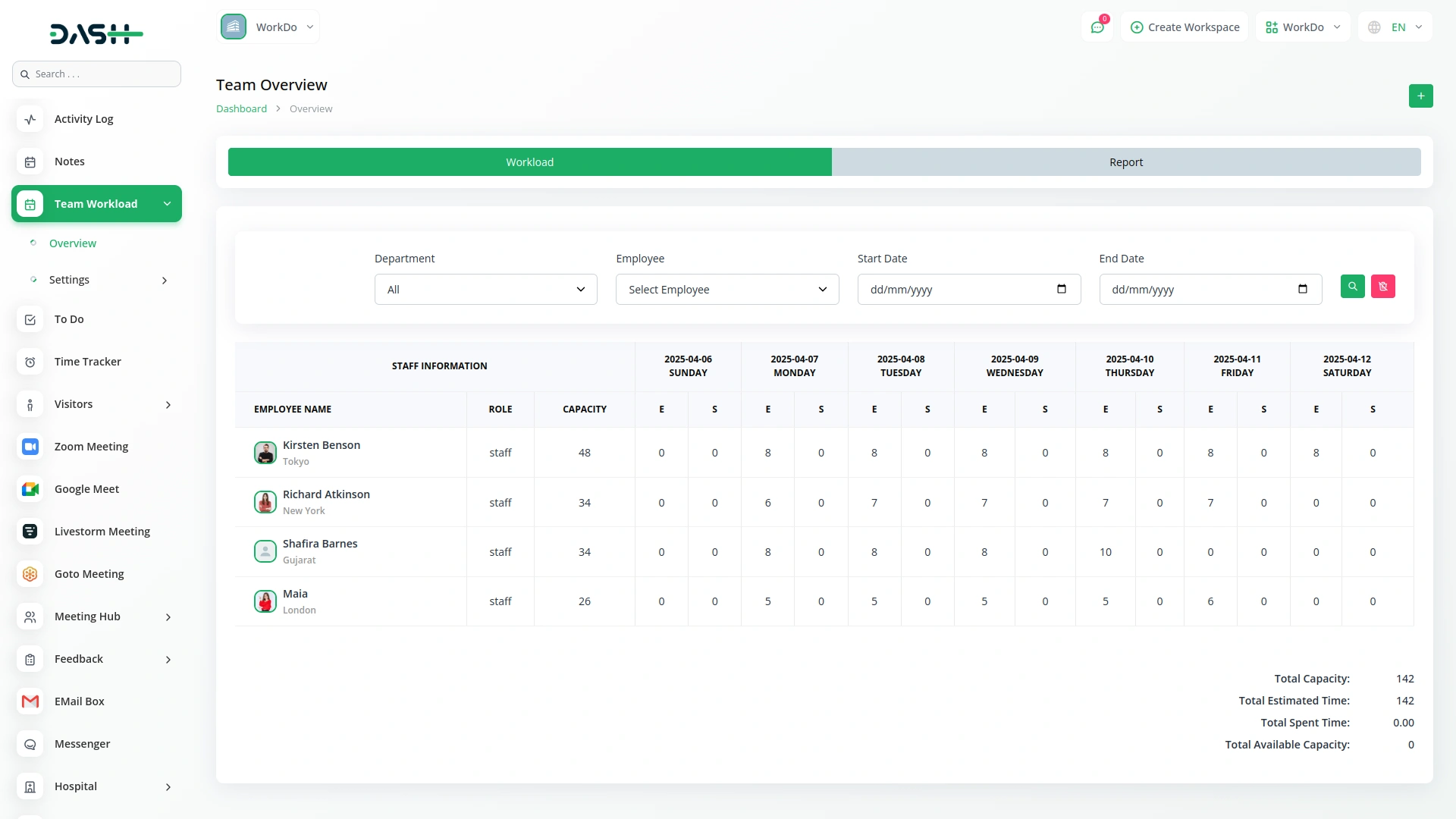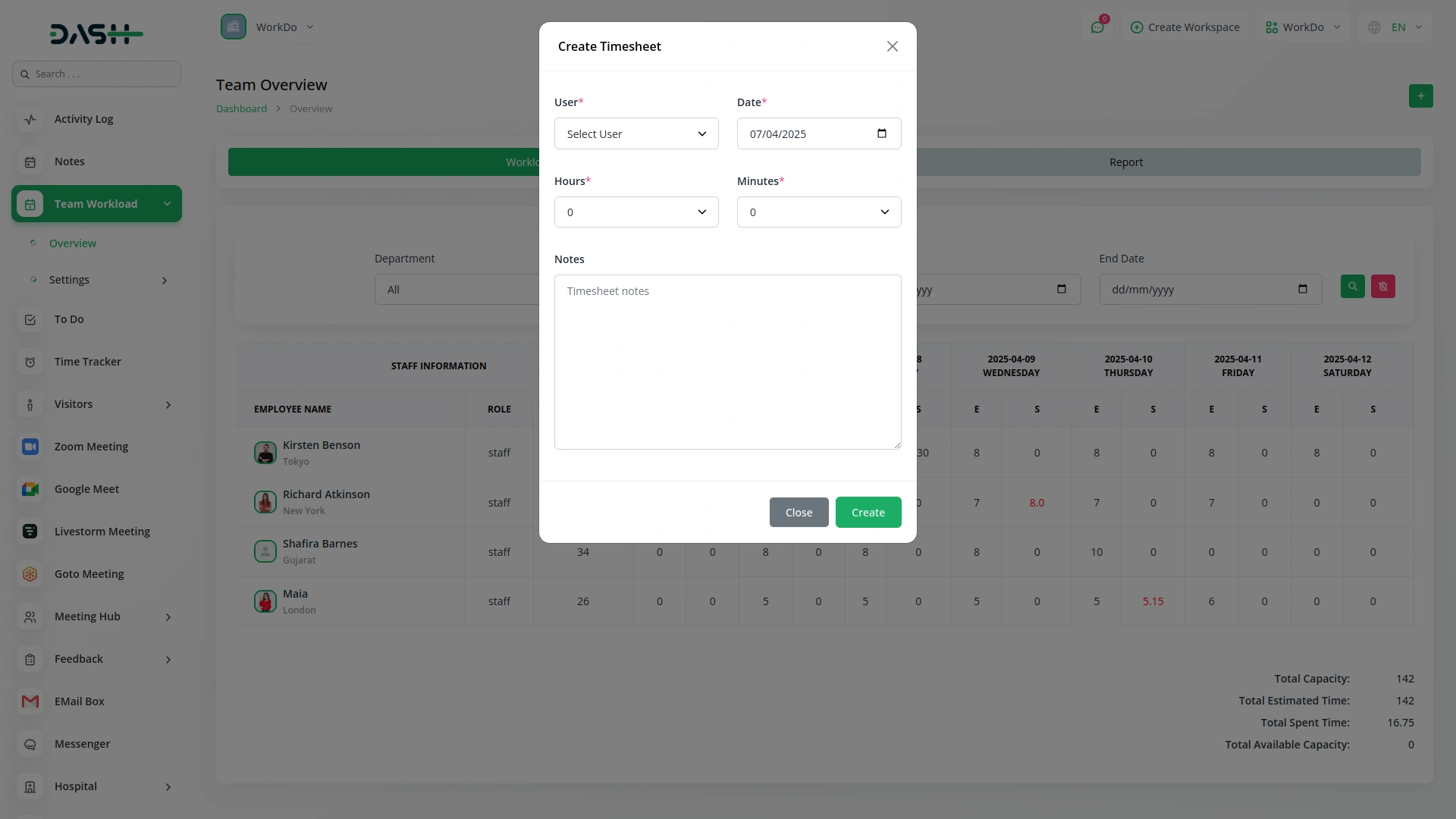 Plan work around holidays by setting start and end dates with descriptions. These entries help to align workload expectations during special occasions or planned leaves while supporting workspace-level separation. Holidays can be added in advance, helping teams prepare ahead of time. Each holiday entry is tied to a specific workspace for better organization.