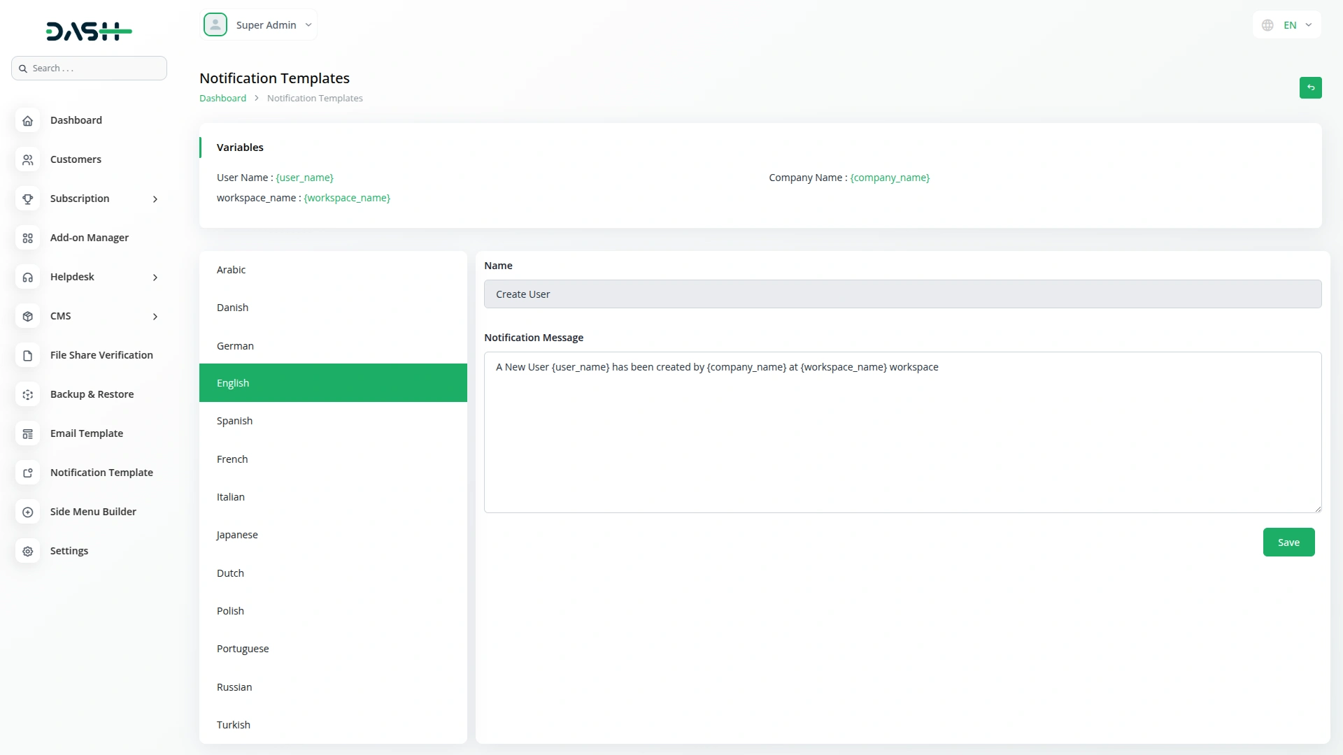 Side Menu Builder – Dash SaaS Add-On