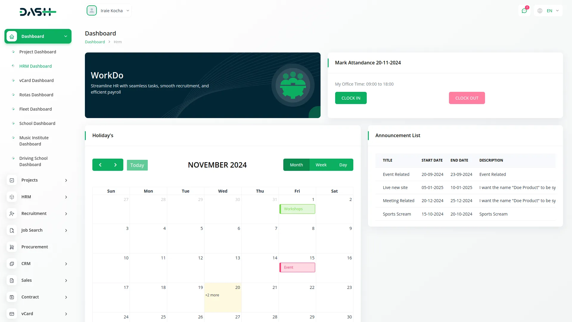 Easily capture and manage work hours with a system built for flexibility and precision. The Timesheet Add-On allows teams to log time through clock in/out records, project-based tasks, or manual entries—adapting to every workflow. With smart role-based controls and seamless integration with HRM and Taskly Add-Ons, it keeps your time data accurate, organized, and actionable.
