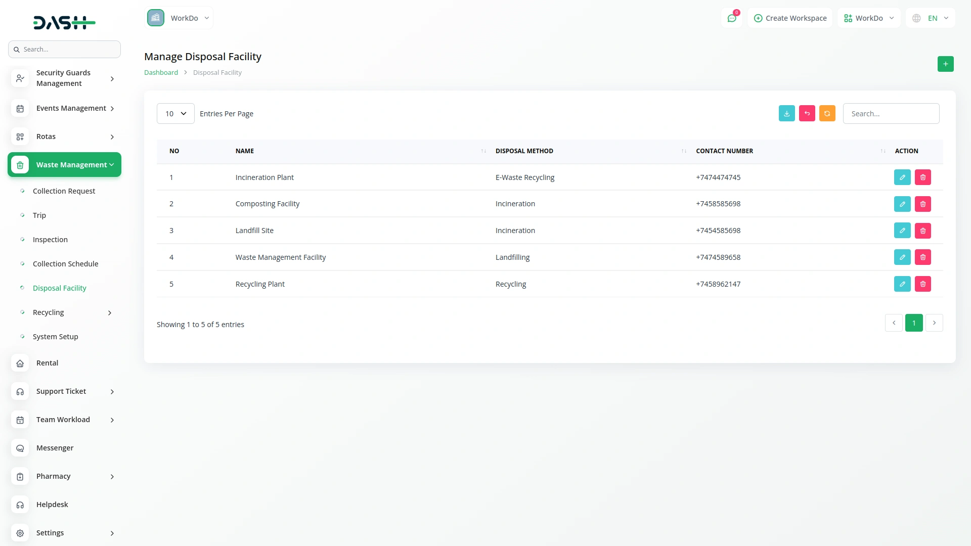 Easily manage communication with waste disposal facilities and ensure seamless coordination for waste transfer.