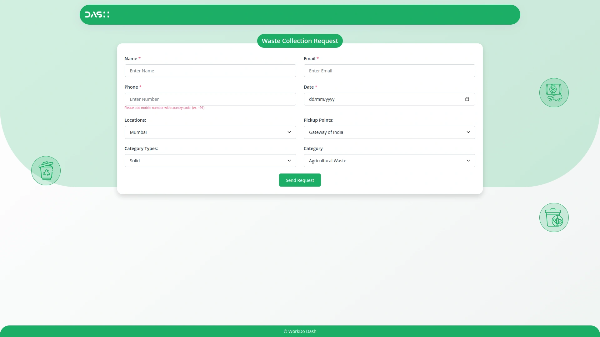 Easily register and track waste collection requests with relevant details like customer contact, waste category, pickup points, and status stages. Assign and manage request IDs for traceability. This system helps maintain accurate, real-time updates for every stage of the request lifecycle.