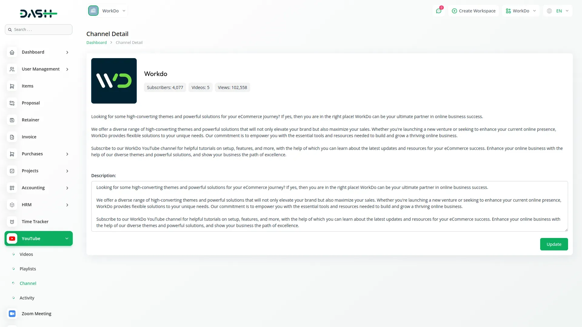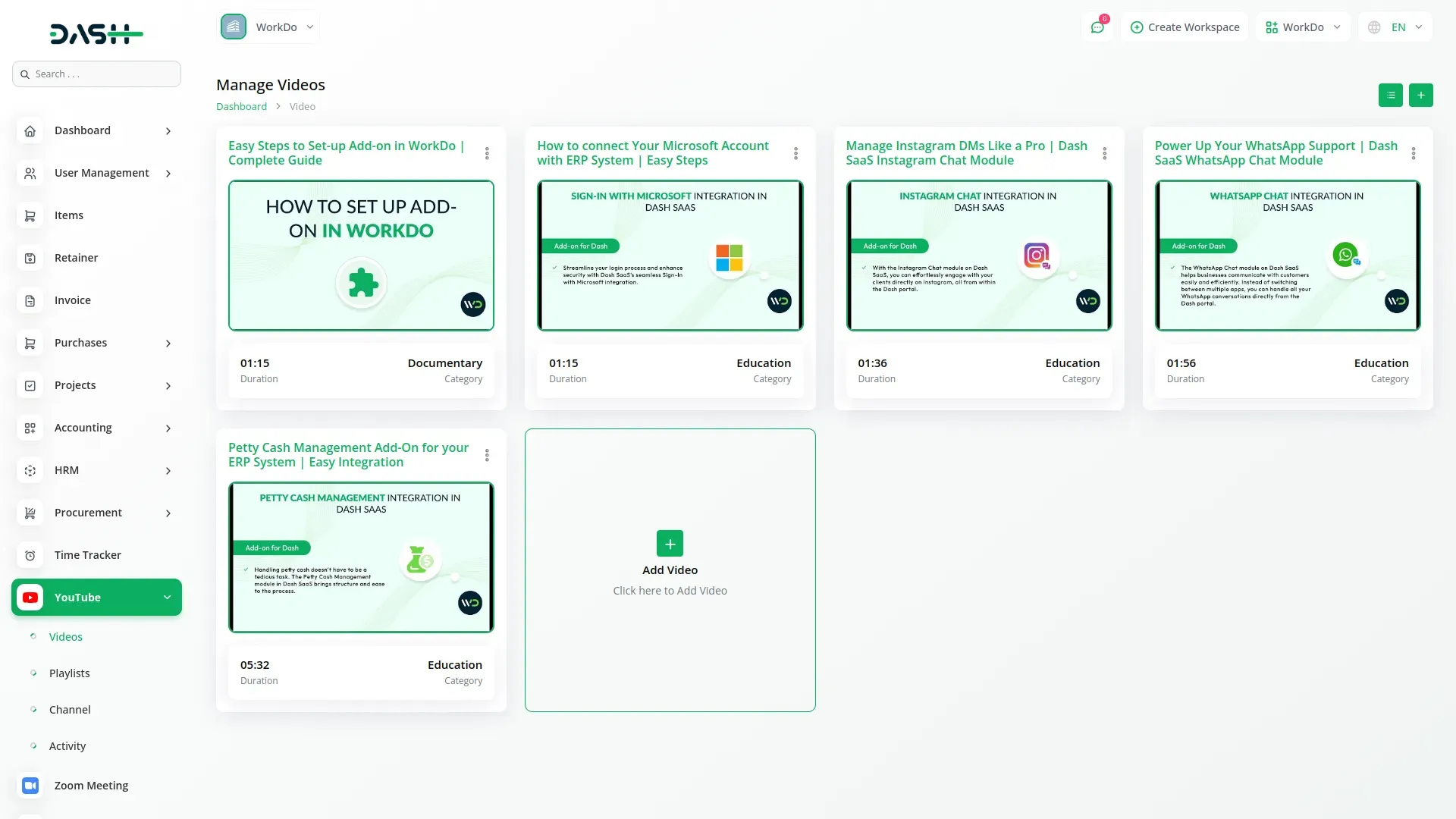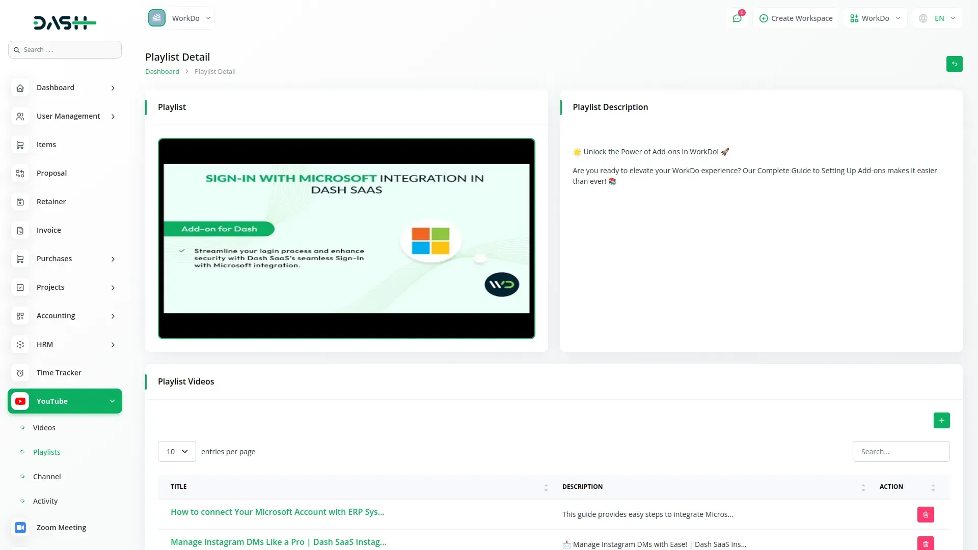 YouTube Content Management – Dash SaaS Add-On