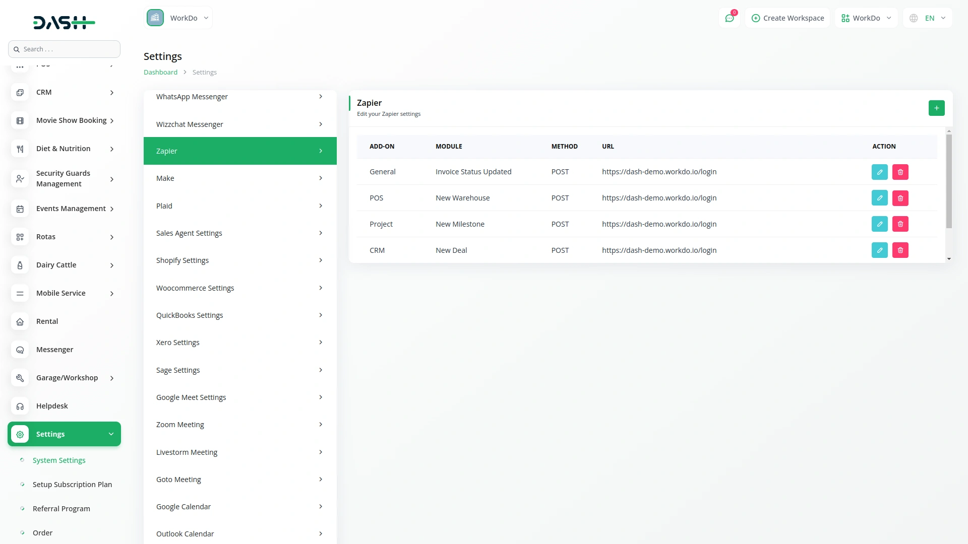 Integrate your system with Zapier to automate tasks across 5,000+ apps. From managing projects, CRM, HRM, and accounting to handling LMS, property, and fleet operations, Zapier makes it all seamless. Trigger actions based on real-time events like form submissions, support tickets, or task updates. Just configure your webhook, select the event, and instantly push data to your connected apps. No manual work—just smart automation that saves time and boosts productivity.