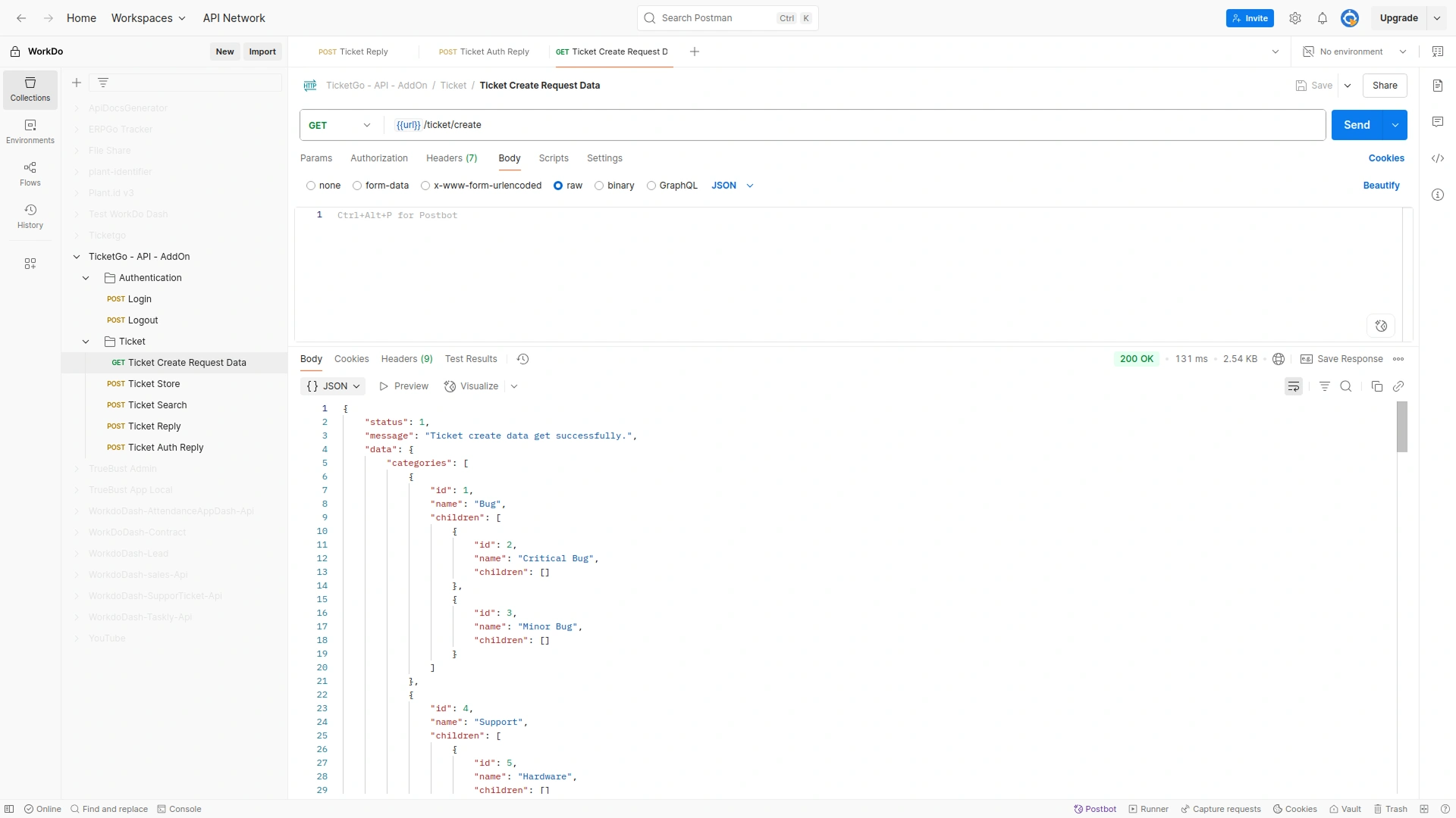 The ticket request data API helps fetch all available custom fields that are used while creating a ticket. This makes it easy to prepare the required data structure before submission. Once the data is ready, the ticket store API can be used to submit the ticket. If pusher settings are enabled, the ticket and any conversations will appear in real time. Without a pusher, the admin needs to refresh the page manually to view new ticket entries. This setup gives flexibility to choose between live updates or manual tracking based on system preferences.