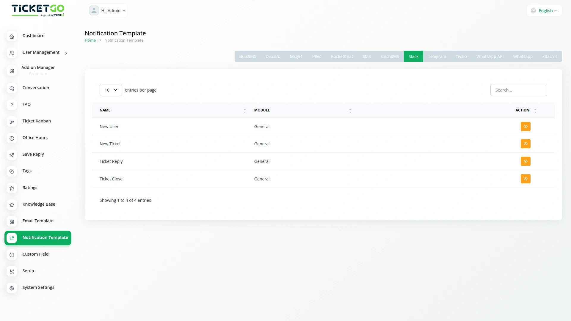 The Slack integration ensures you stay updated on all key activities within TicketGo. Receive instant alerts when a new user is created, a new ticket is generated, a ticket reply is sent, or a ticket is closed. These notifications help your team stay on top of their tasks and respond promptly, improving communication and reducing delays. By centralizing all updates within Slack, your team can collaborate more effectively and resolve tickets faster.
