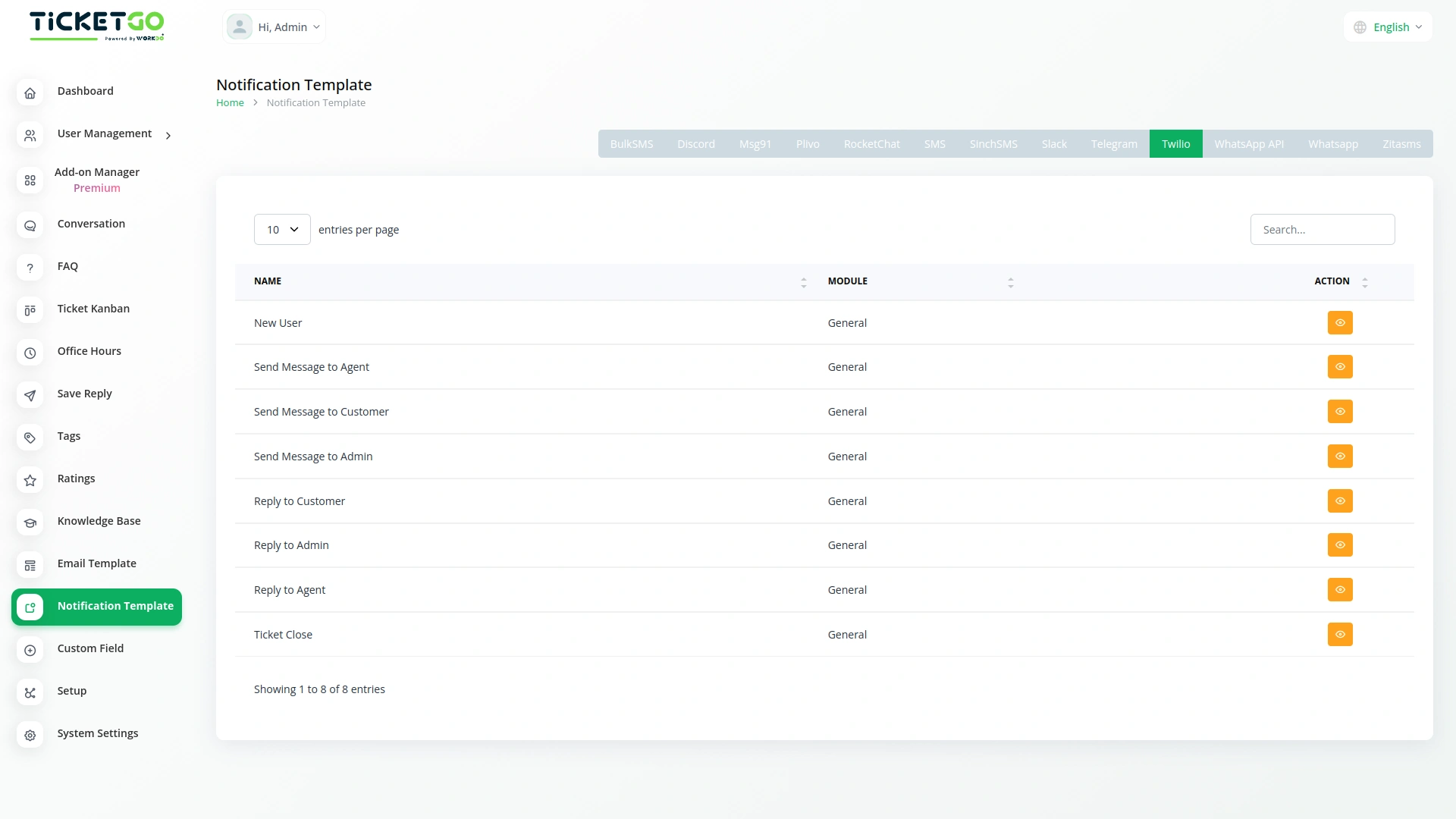 With the Twilio integration, you can receive real-time SMS notifications for every important update within TicketGo, ensuring that your team can act immediately on new tickets, ticket assignments, and status changes. This instant access to critical information allows for faster decision-making, reducing delays and boosting overall productivity. With Twilio, you’ll never miss an important update, ensuring that your team is always one step ahead.