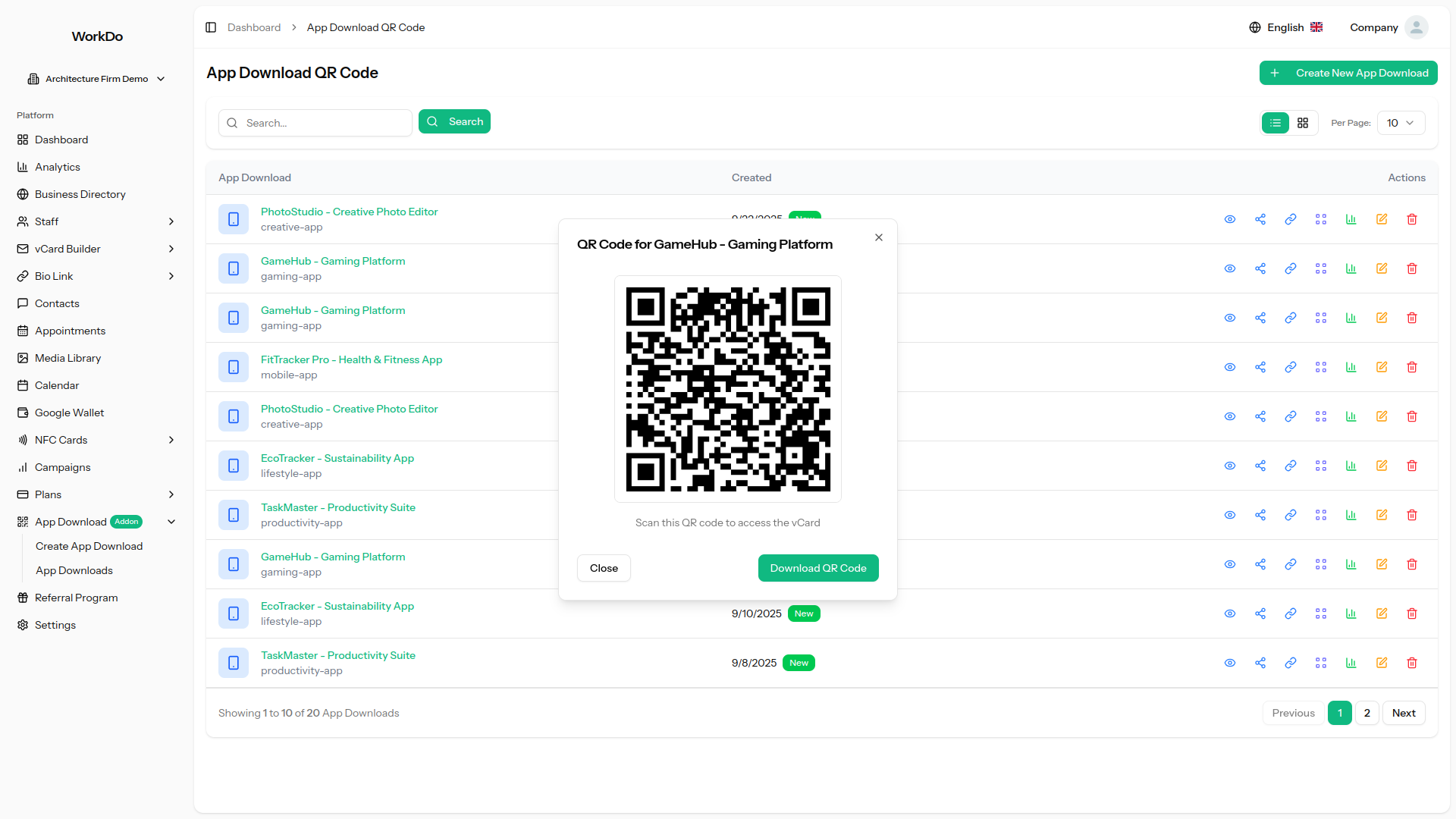 Generate high-resolution QR codes perfect for print marketing materials, business cards, app store displays, and digital advertising campaigns. The QR codes link to your branded app download landing page, creating a professional bridge between offline marketing and app downloads. Perfect for conferences, retail locations, and promotional events. The addon provides multiple QR code formats with optimized scanning reliability across various lighting conditions and includes advanced error correction for damaged or partially obscured codes.