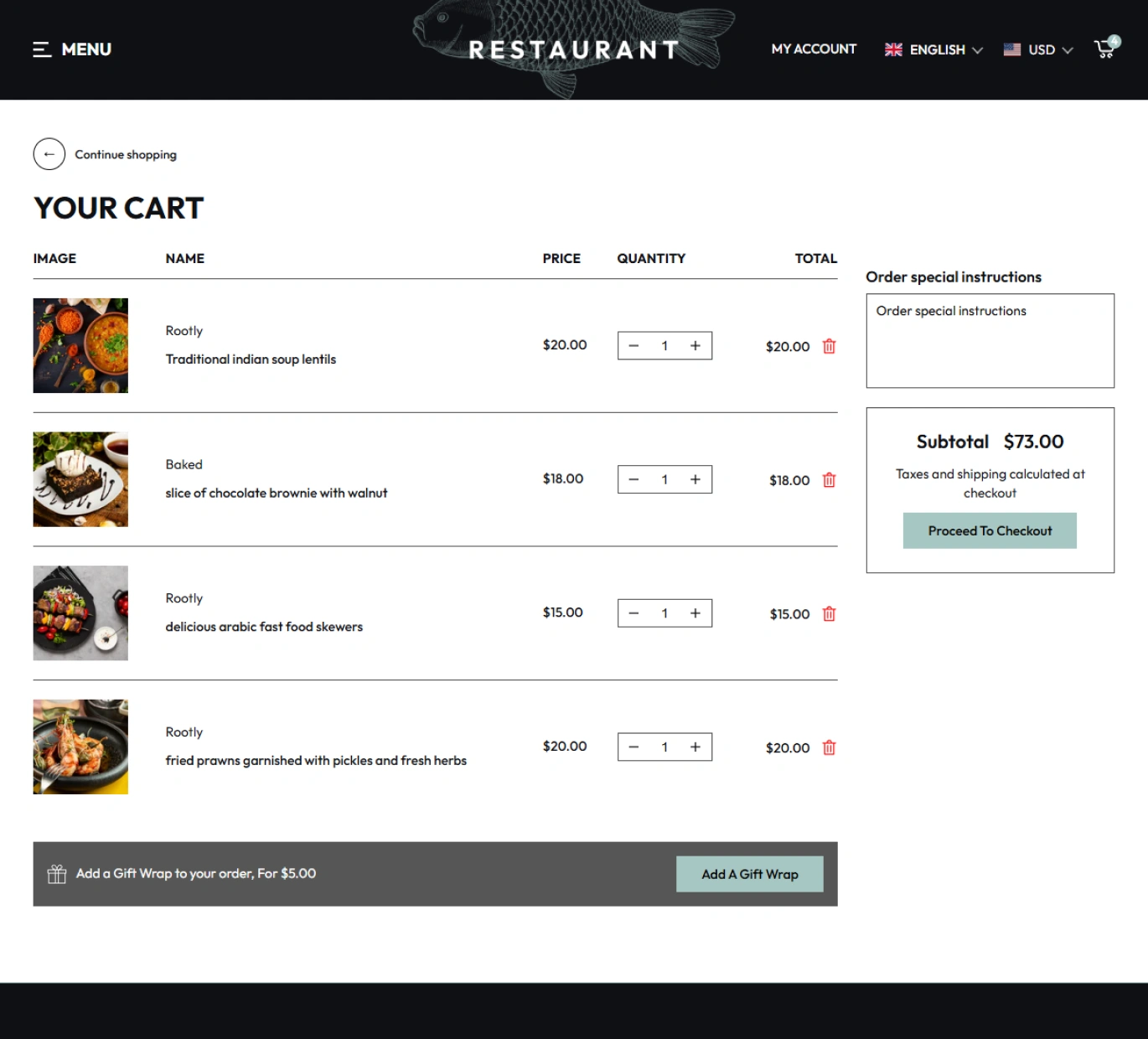 The Shopify theme ecosystem also offers professional support and constant updates, making it a reliable choice for restaurant owners who want hassle-free management.